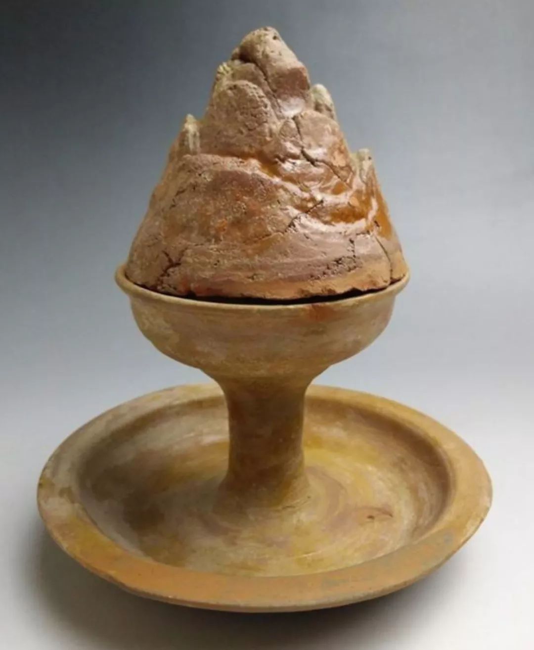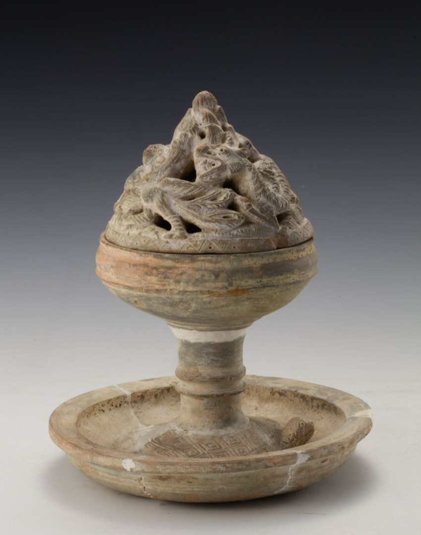 前文所举之例大多为铜博山炉,其实汉代出土的博山炉从数量上来说,大量的都是如下面各图中所呈现的陶博山炉,这或者是底层人士对上层社会的效仿,有些也许有实用价值,但大多数都是明器,用以殉葬的,希望他们的亲友在死后也可以像那些贵族一样,过着神仙一样的日子。
