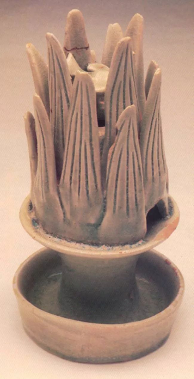 另外,博山炉的兴盛与佛教也有莫大的关联。南北朝时期,佛教中的某些元素已被移植到代表着通往神仙世界的辅助道具博山炉的设计中,成为新的宗教信仰道具。最明显的就是莲花装饰在博山形熏炉中的大量出现。这类莲瓣纹熏炉在福建建瓯水南南朝墓、福州闽侯南朝中都有发现。