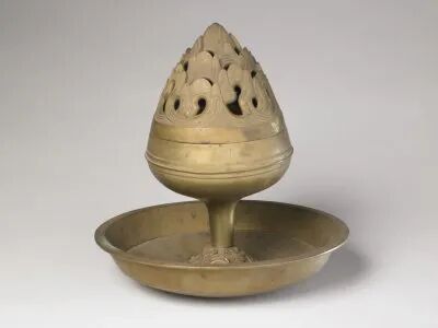 看来熏香习俗在我国由来已久,起初只是为了熏香衣物、消除疲劳以及驱散蚊虫等,后来演变成一种雅致的生活习俗。博山炉设计巧妙,当炉腹内燃烧香料时,烟气从镂空的山形中散出,有如仙气缭绕,给人以置身仙境的感觉。
