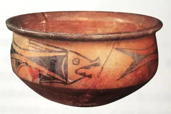 其三,客观世界的制约并没有限制原始先民的思考。在不断寻求新发现、萌发创新热情之后,原始美术往往极富想象力,最终因传达信息断层使其又多了一股神秘意味。例如《人面鱼纹彩陶盆》因其内部的人面鱼纹而具有代表性和神秘气息。