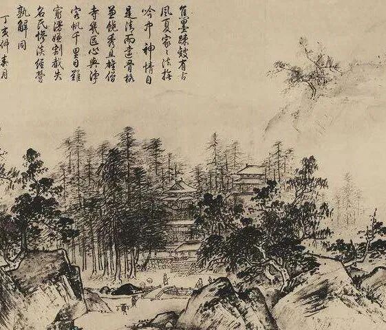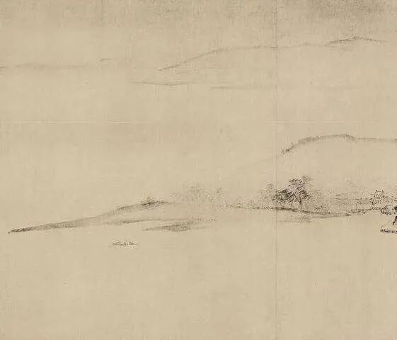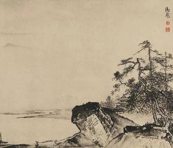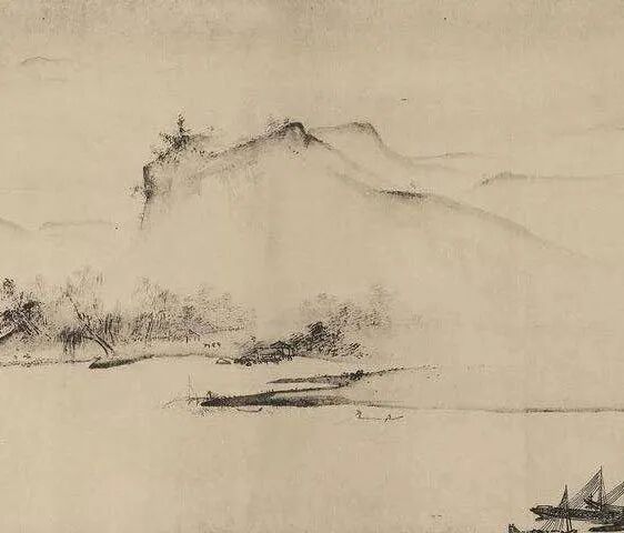 与马远并称“马夏”的夏圭,字禹玉,南宋宁宗时任画院待诏。存世画作有《溪山清远图》、《松溪泛月图》、《松崖客话图》、《洞庭秋月图》等。文征明评其作“全以趣胜”。比起马远的峭拔犀利,夏圭不露圭角,画风润圆浑苍劲,画树叶间夹笔,常以信手而成,气韵尤高。《溪山清远图》画面村落和行人舟楫,透露出画者天真烂漫的情趣。松树为写意,苍古而简淡,寥寥数笔间将松融入山峦、汀渚、烟云的自然景色中,画面在殊松中见隽秀,于清旷中见超然之远韵。