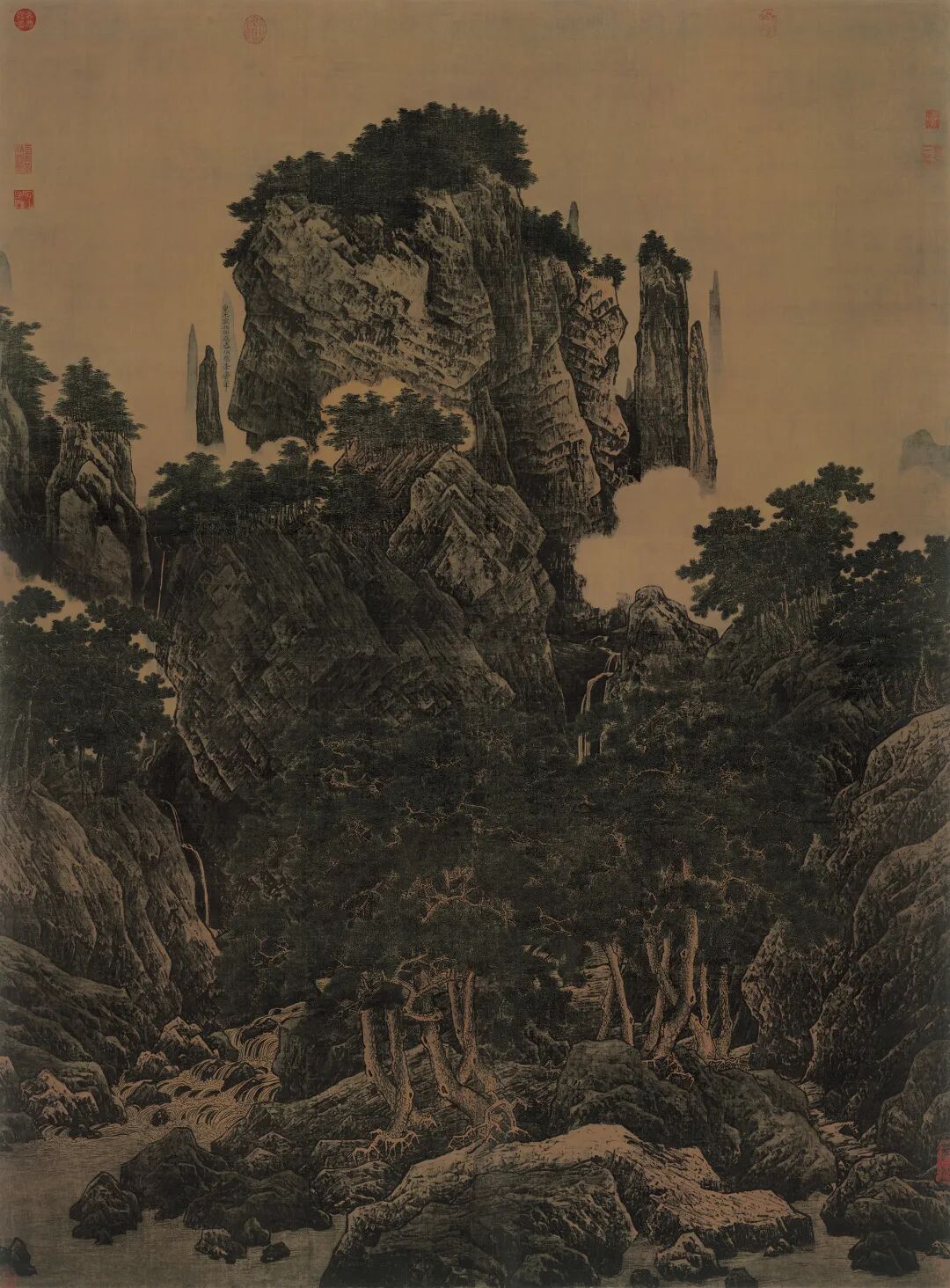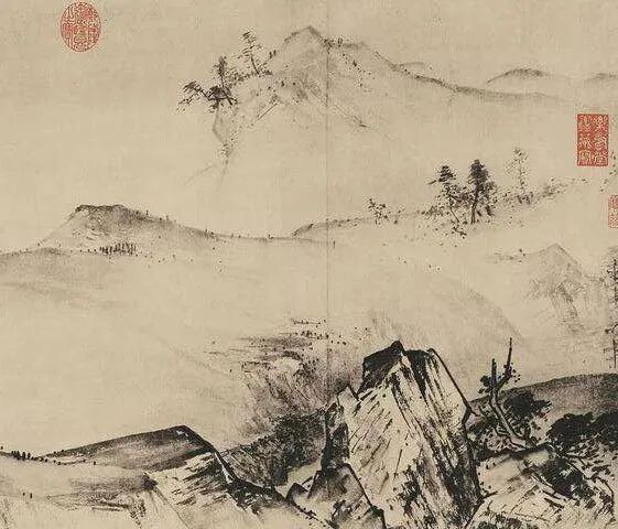 南宋时期,都城南移,与北宋画家看到的自然风景发生了巨大的变化。山水画在空间布局上有了新的形式,儒学“以小观大”影响了南宋的整体画风。南方秀丽山水的诗意性空间的表达方式逐渐显现。在画学和理学中,“松”乃万木之首,松的元素依旧令画者着迷。这个时代的山水画家首当以马远、夏圭、刘松年等为例。