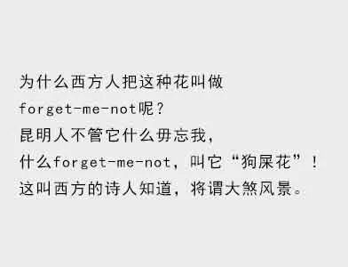 我在昆明吃过不少次牛大筋,只是因为它好吃,不是为了壮阳。 ——《昆明菜》 她说这三种植物不是一个季节,说她到苏州一带调查过(天知道她调查了没有)。 ——《撞墙集·关于<沙家浜>》