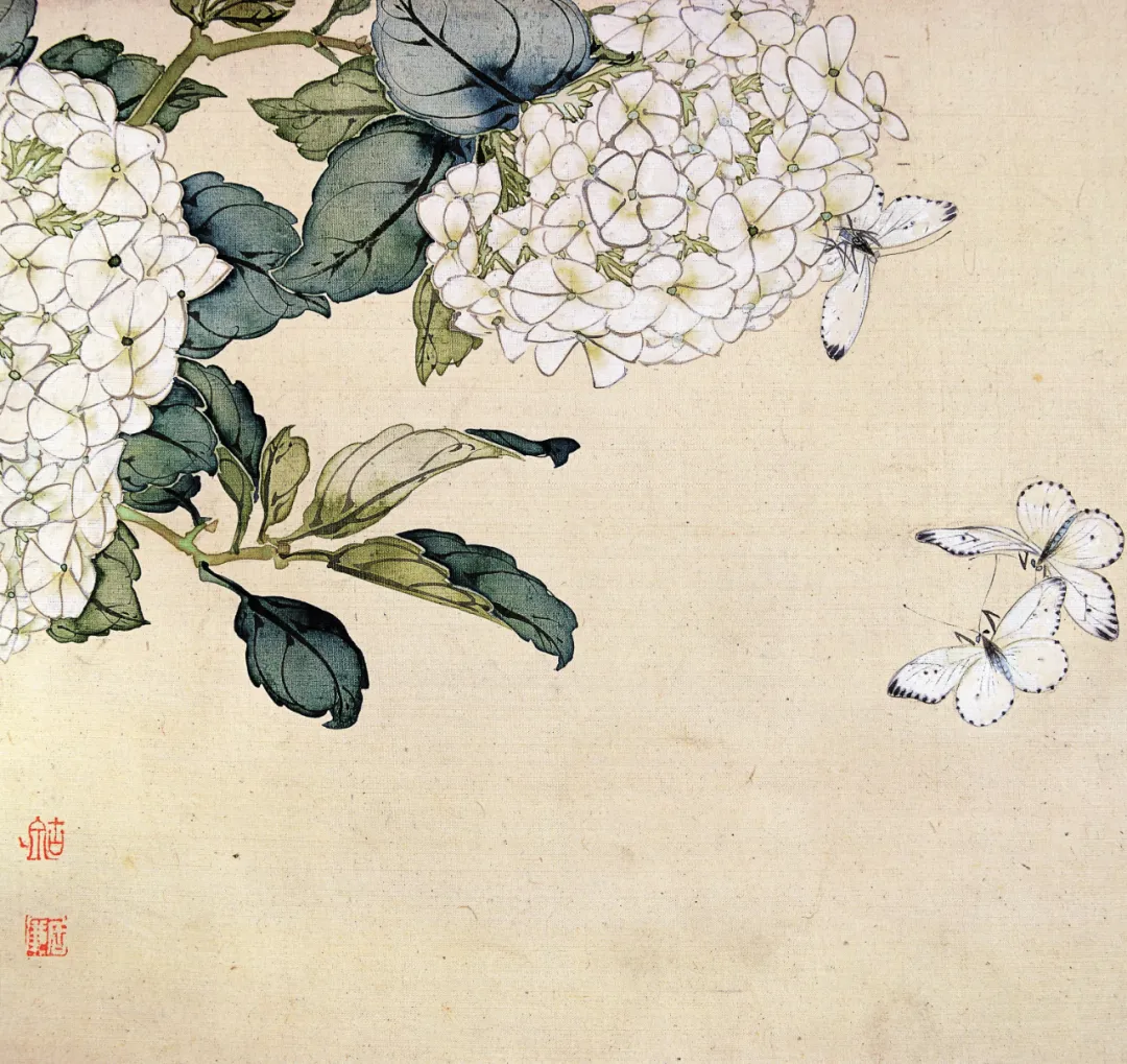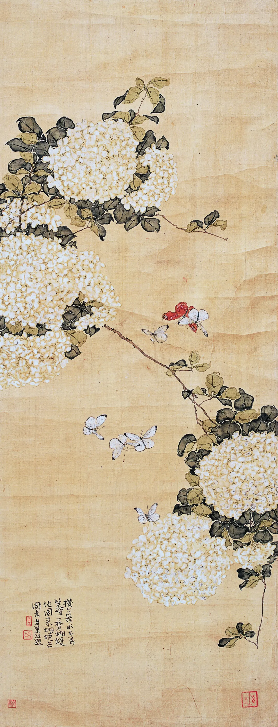 《绣球蝴蝶》41x108cm 19世纪60年代作 广州艺术博物院藏