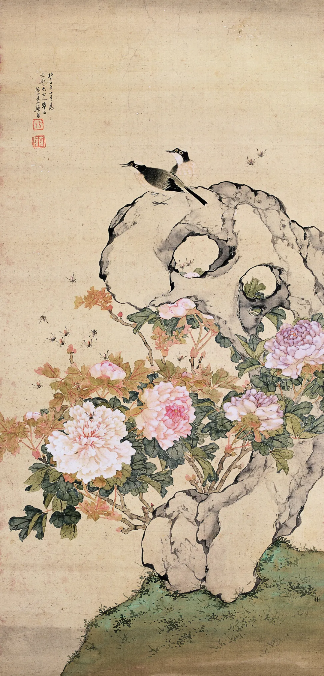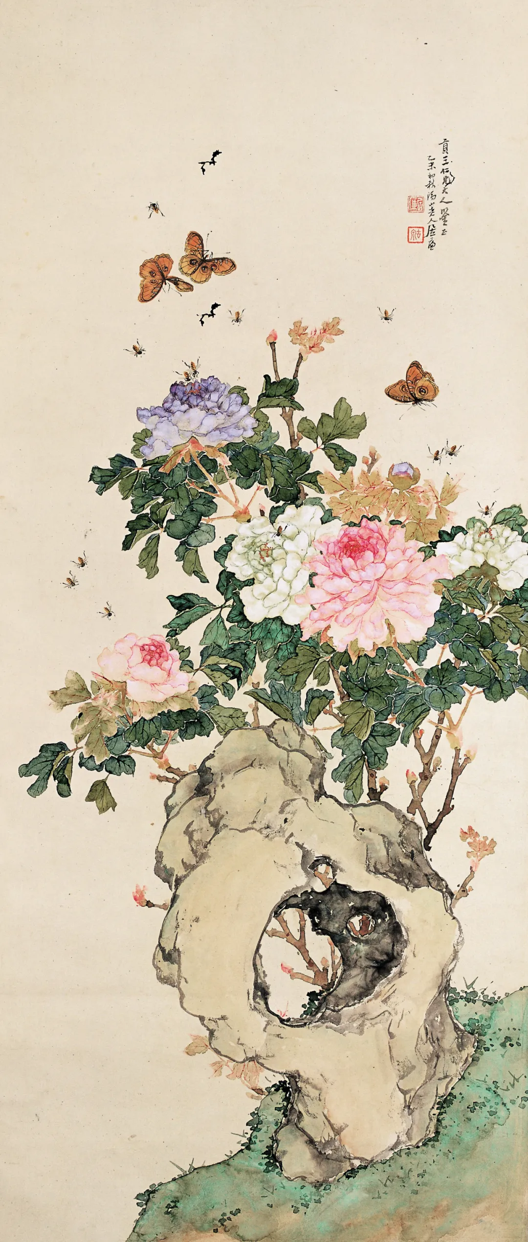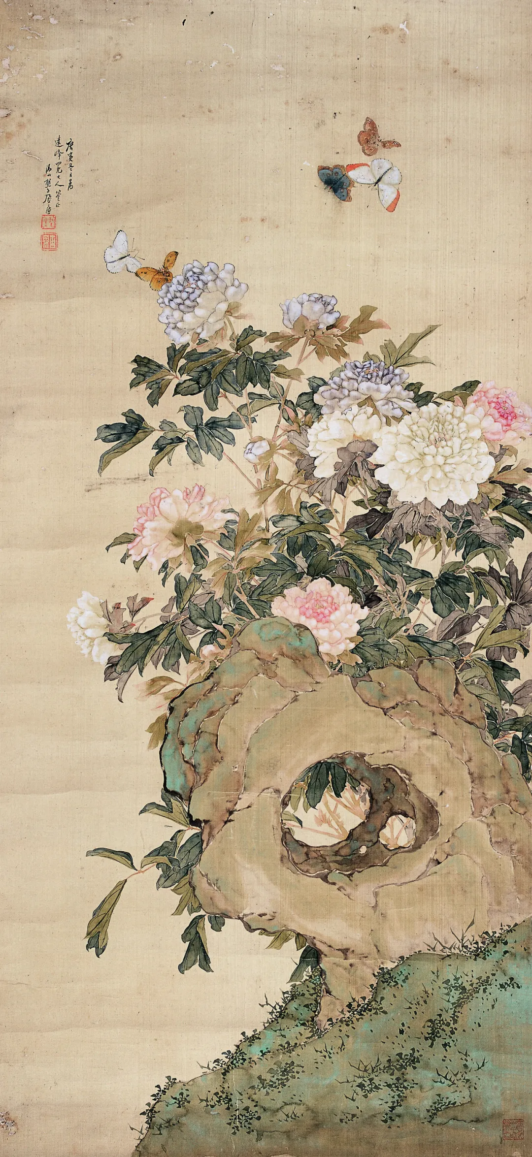 《芍药蝴蝶》54x117cm 1890年 广州艺术博物院藏