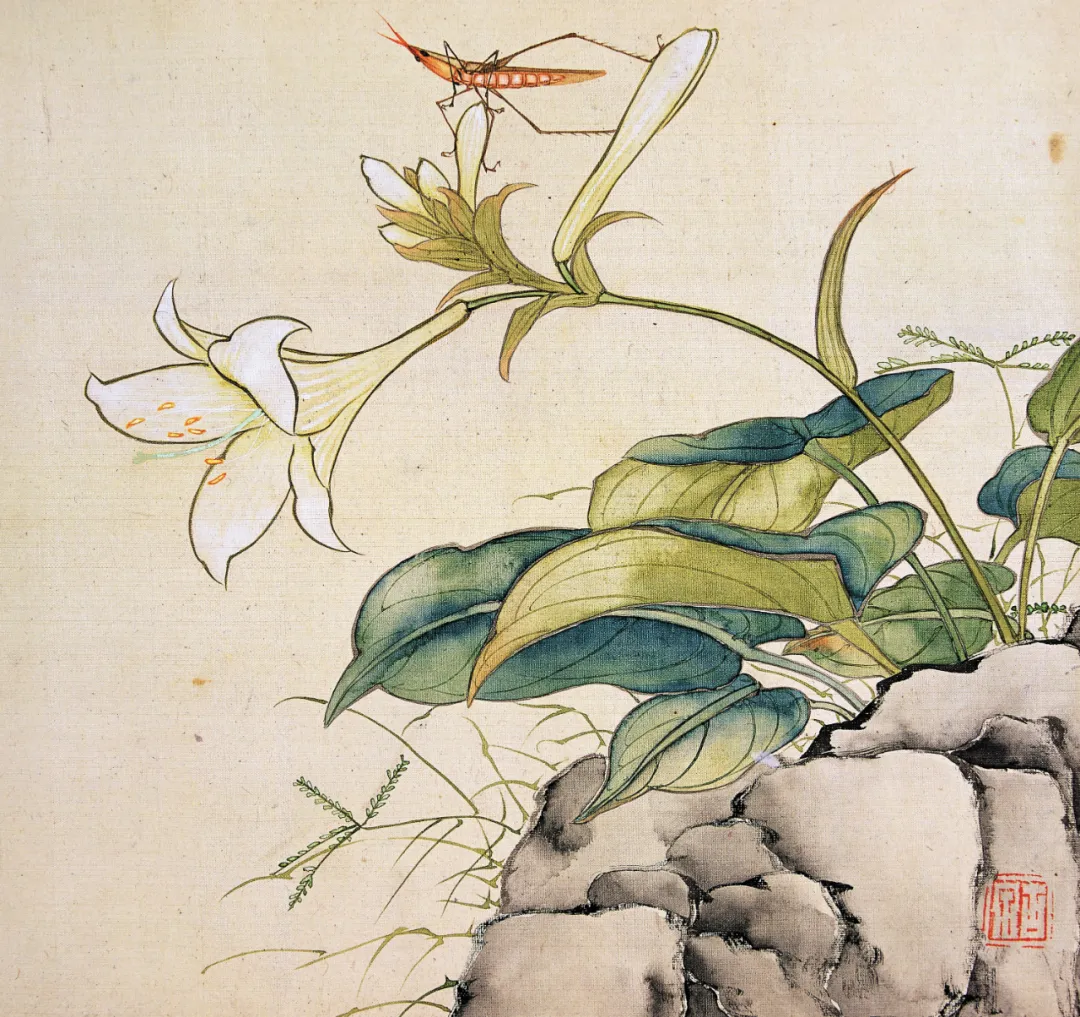 《玉簪蚱蜢》26x25cm 1873年广州艺术博物院藏