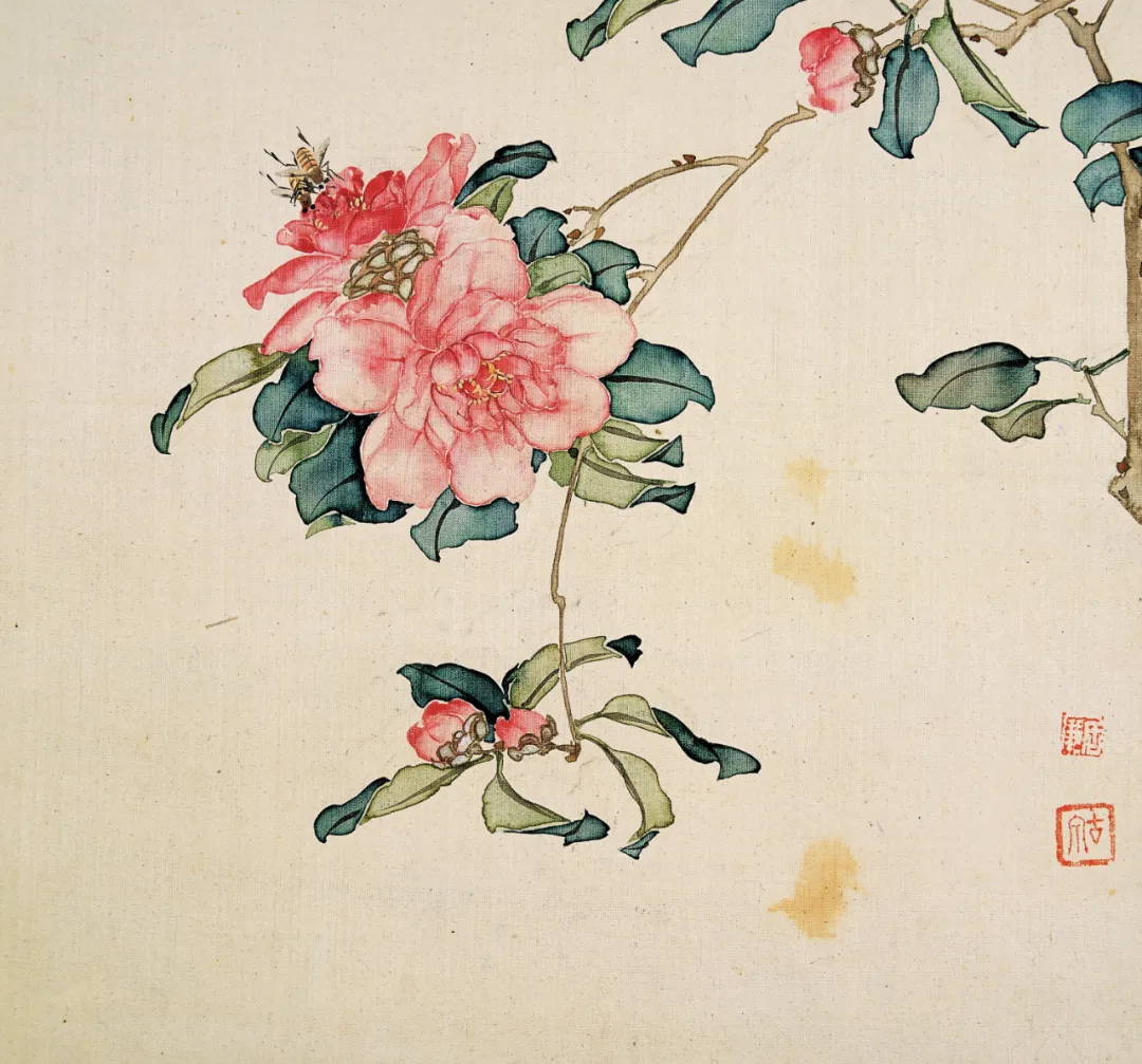 《山茶蜜蜂》26x25cm 1873年广州艺术博物院藏