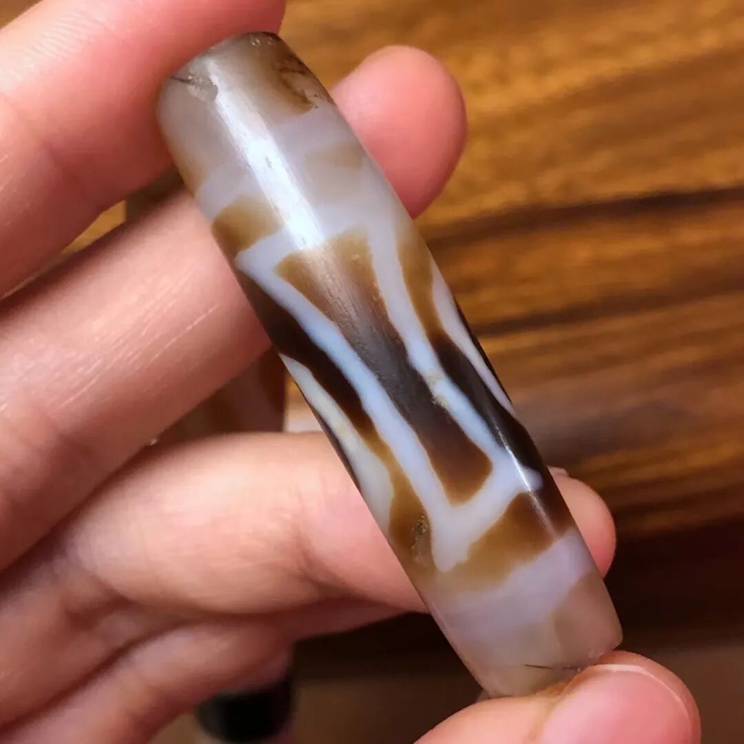 【古玩那点事儿】千年大颗双天地图腾措思天珠老玛瑙镶蚀古珠