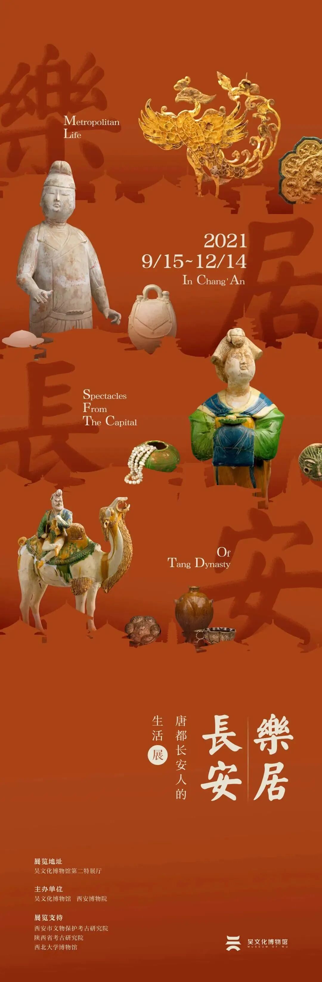 本次展览共分为“百千家似围棋局”“月照长安万户人”“一日看尽长安花”“千歌万舞不可数”四部分,从唐长安城的建筑布局到居民成分;从罗衫玉带到珍馐美馔、日常用器;从车马喧嚣到娱乐生活。以建筑构件、墓志拓片、陶俑、金银器、瓷器、玉器等展品为主,展墙说明为辅,以期部分还原大唐长安人的日常生活。