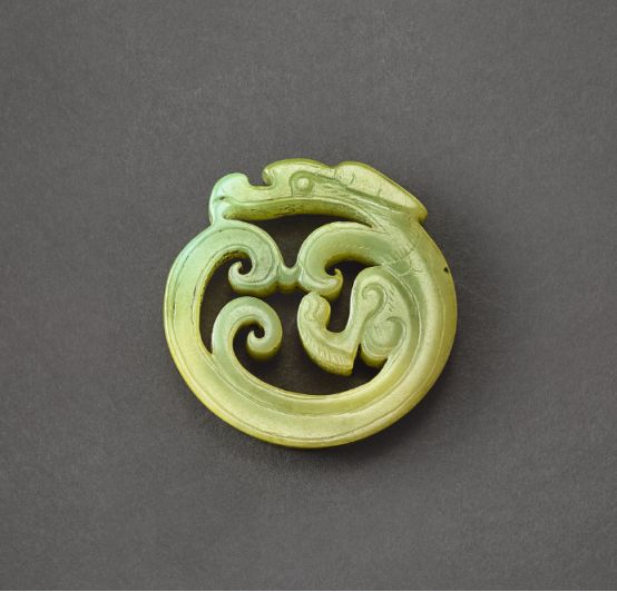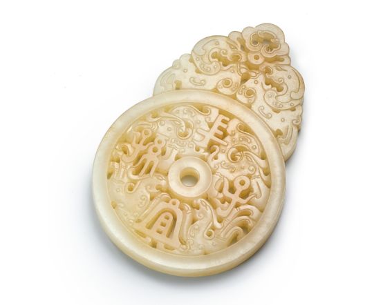 清 青白玉透雕夔凤纹「长宜子孙」佩