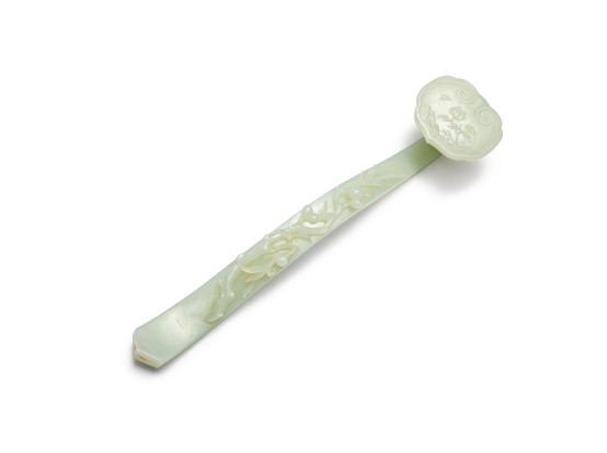清十八至十九世纪 白玉牡丹寿桃纹如意