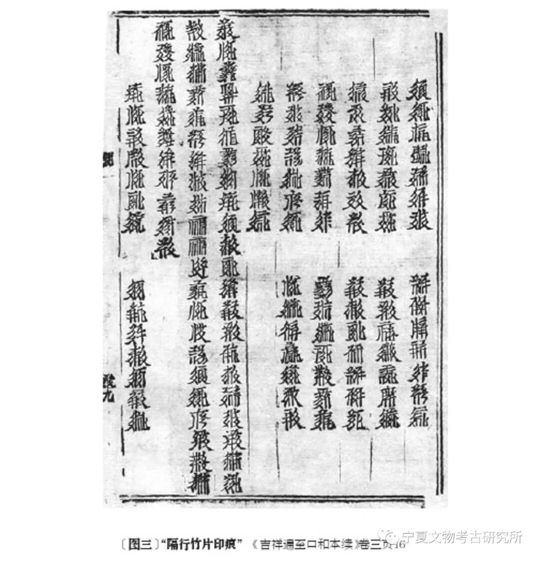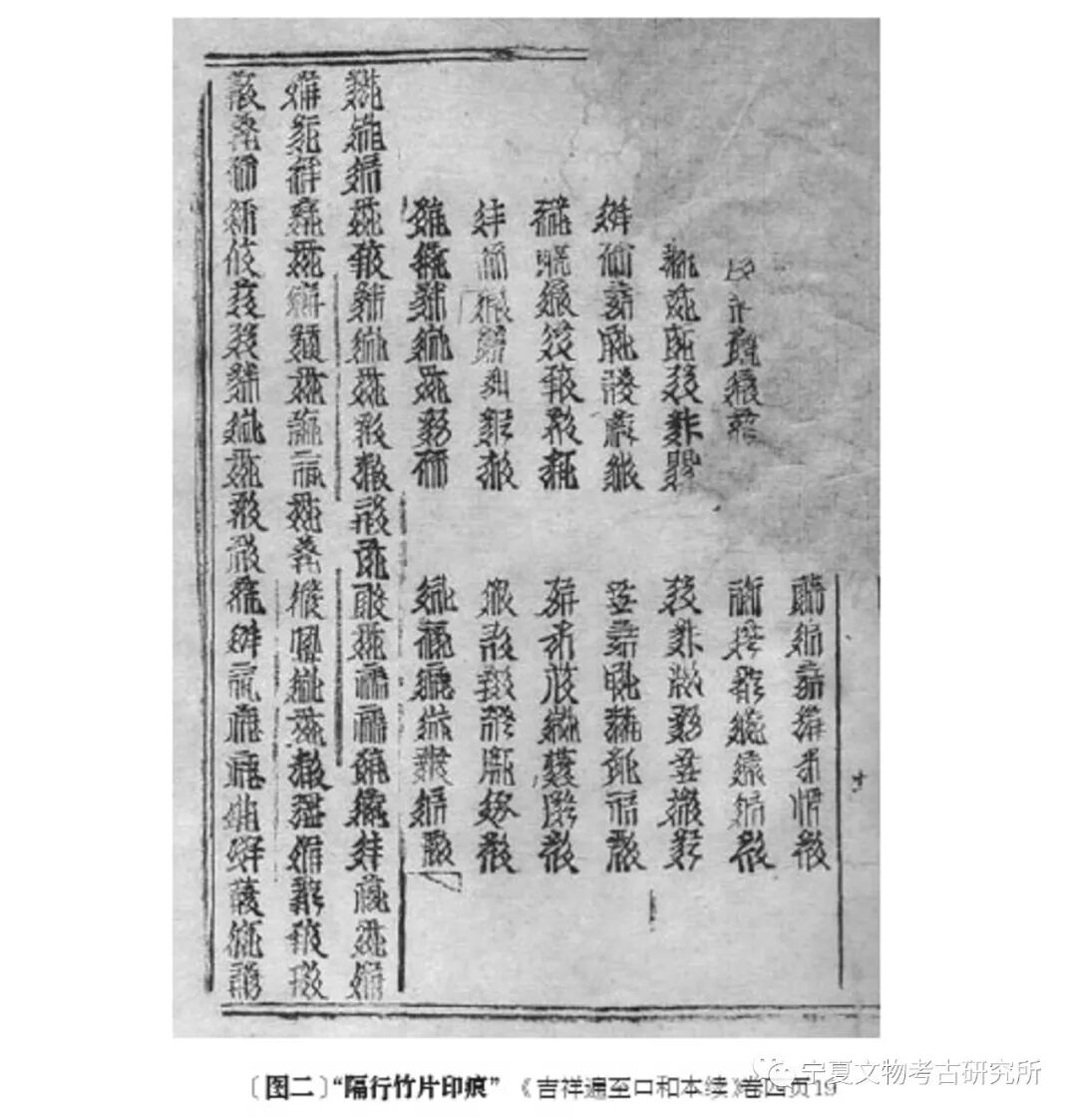 上述认识,因至今未发现宋元活字印本,所以目前无法通过直接证据加以确认。但是,我们从西夏木活字版印本《本续》中找到了旁证,这就是“隔行竹片印痕”。