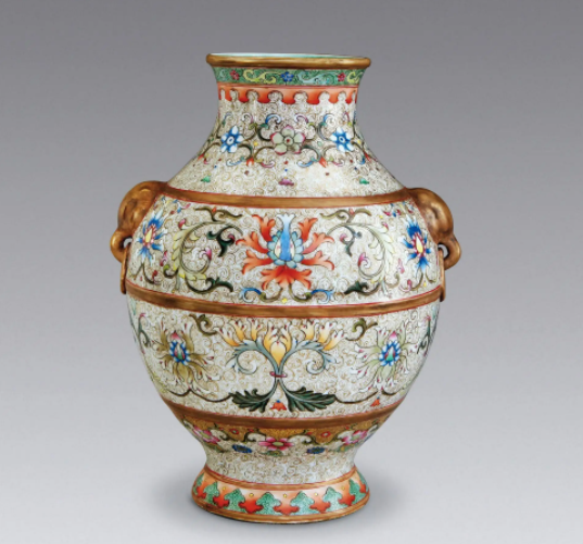 珐琅彩宝花纹双耳罐