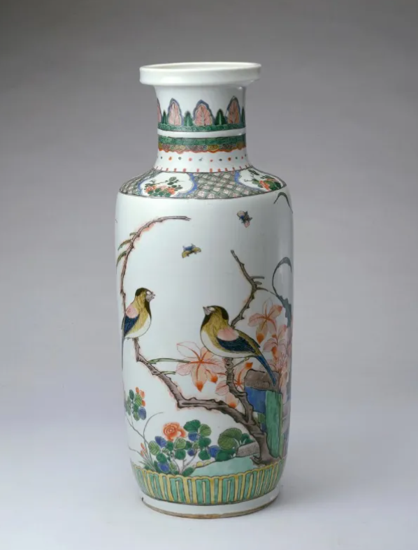 粉彩是在康熙五彩瓷器的基础上,采用珐琅彩的进口色料绘制,经炉火烧制而成。粉彩的色彩丰富,色调淡雅柔和有粉润之美,故称为“粉彩”。