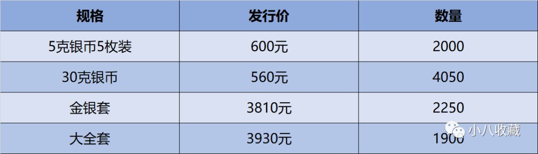 本次工商银行的预约抽签共有4个规格可以预约,分别是5克银币5枚套装、30克银币、金银币套装、大全套。