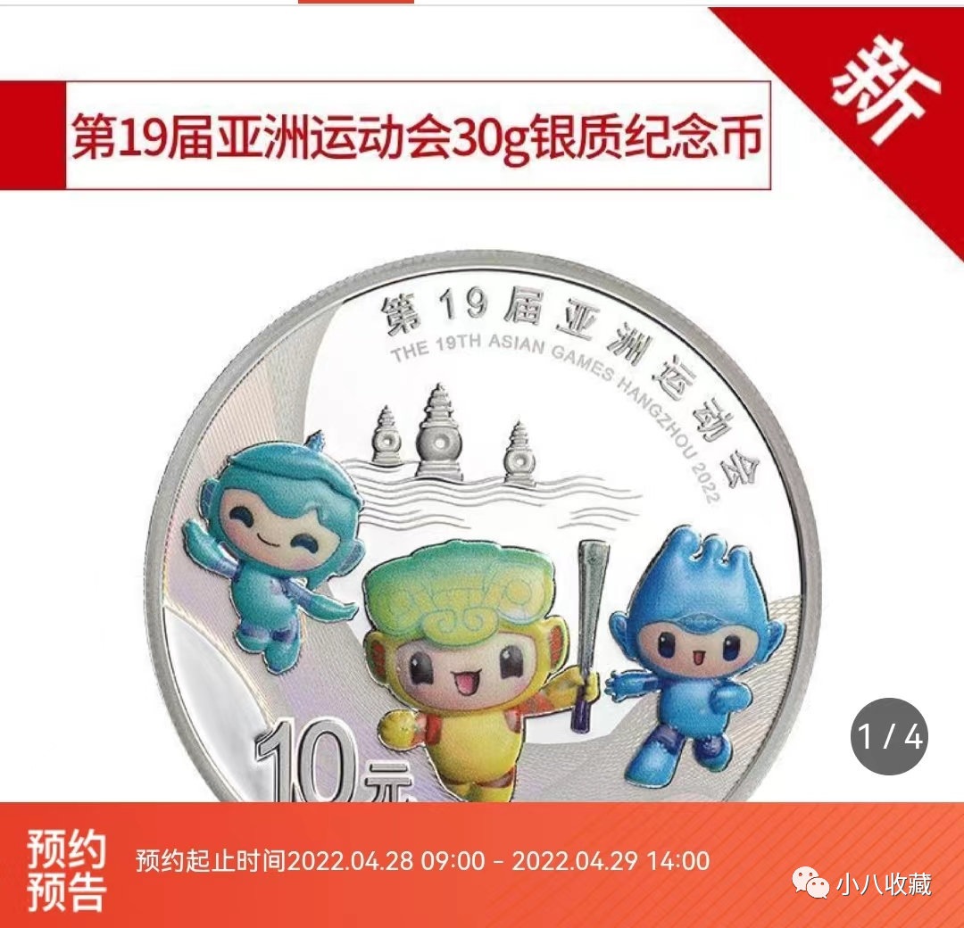 前几天,央行发布公告,将于4月28日发行一套第19届亚运会金银纪念币!