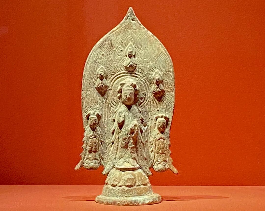 图二 六朝博物馆展出南京德基广场出土南朝金铜佛像