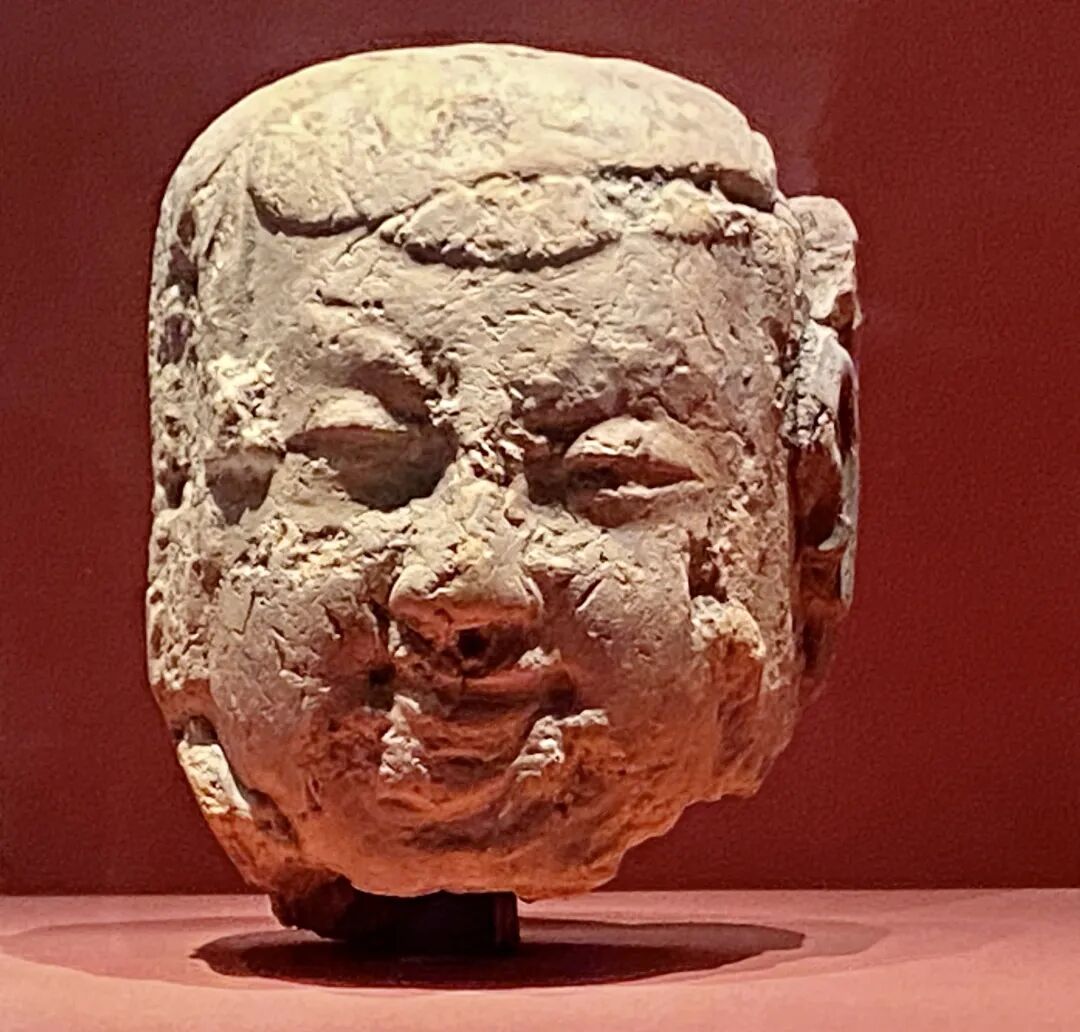 图一 六朝博物馆展出南京红土桥出土南朝泥塑佛像