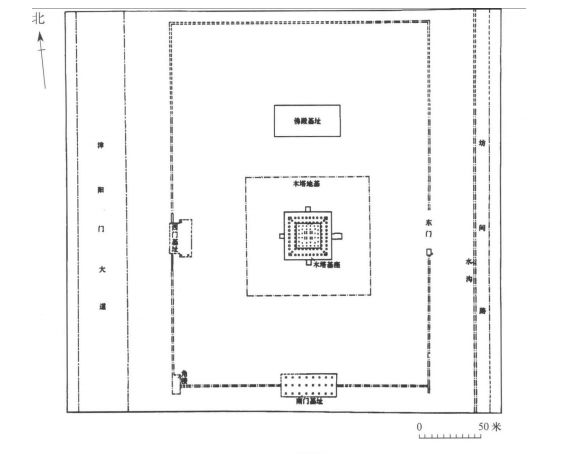 图三 北魏洛阳永宁寺遗址“前塔后殿(堂)”空间形态(原图来源于中国社会科学院考古所:《北魏洛阳永宁寺——1979~1984年考古发掘报告》,中国大百科全书出版社,1996年版)