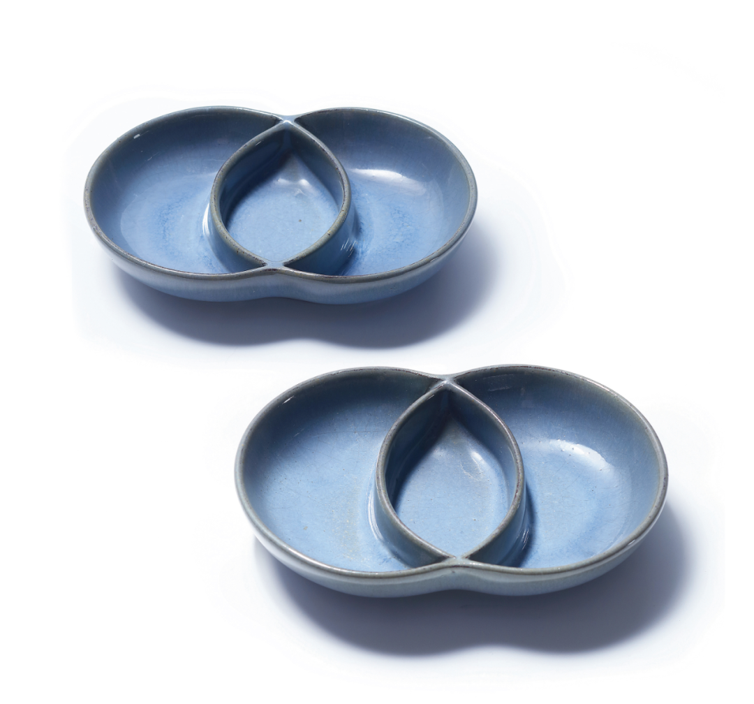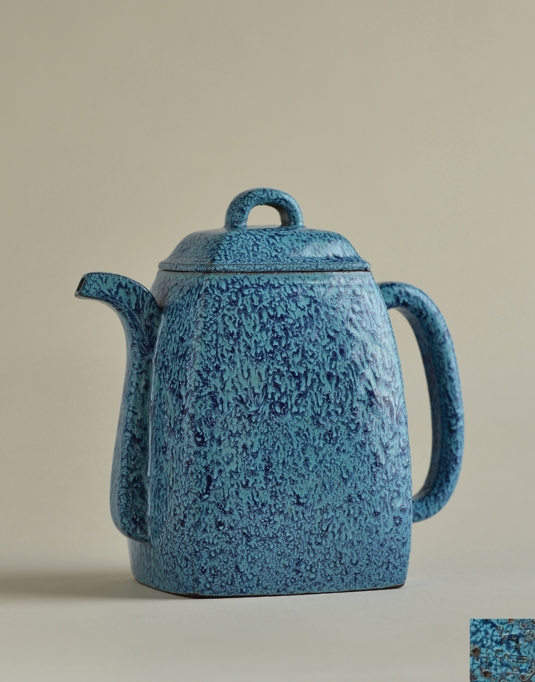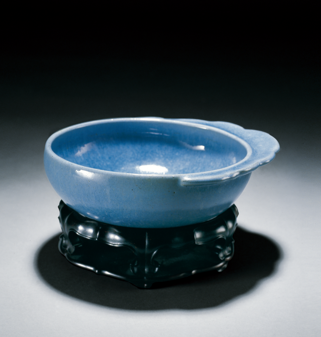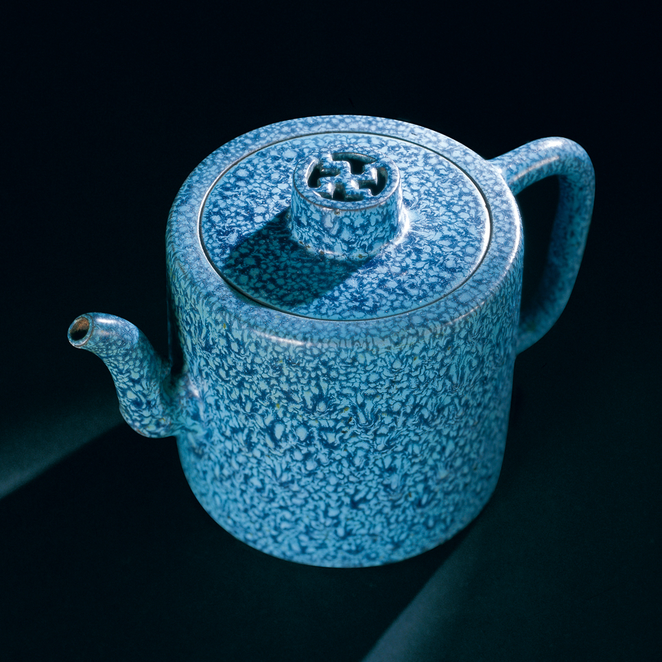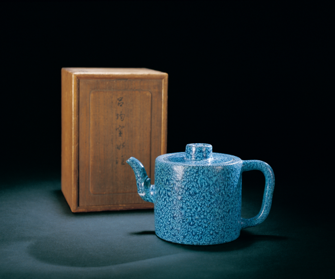 宜兴陶以茶壶著名,造形多样,其中又以宜钧中高等级者至为稀有,可做宫廷用器,如各式赏器、文房等,其釉色淡雅清新,宛如雨过天晴,于淡蓝釉中泛出若隐若现的深色沉着斑点,似天青色长空中飘忽的奇幻云彩。不仅色彩纯素高雅、鲜艳莹润,且造型端正大气、饱满挺立,两岸故宫博物院中皆可见宜钧之代表佳器,至为珍稀。