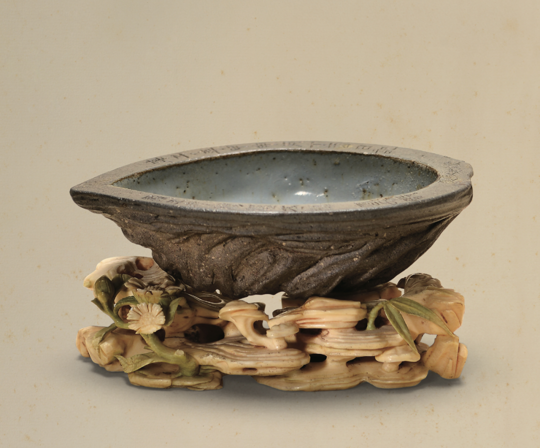 清乾隆 爱闲老人制内挂釉桃核形水洗