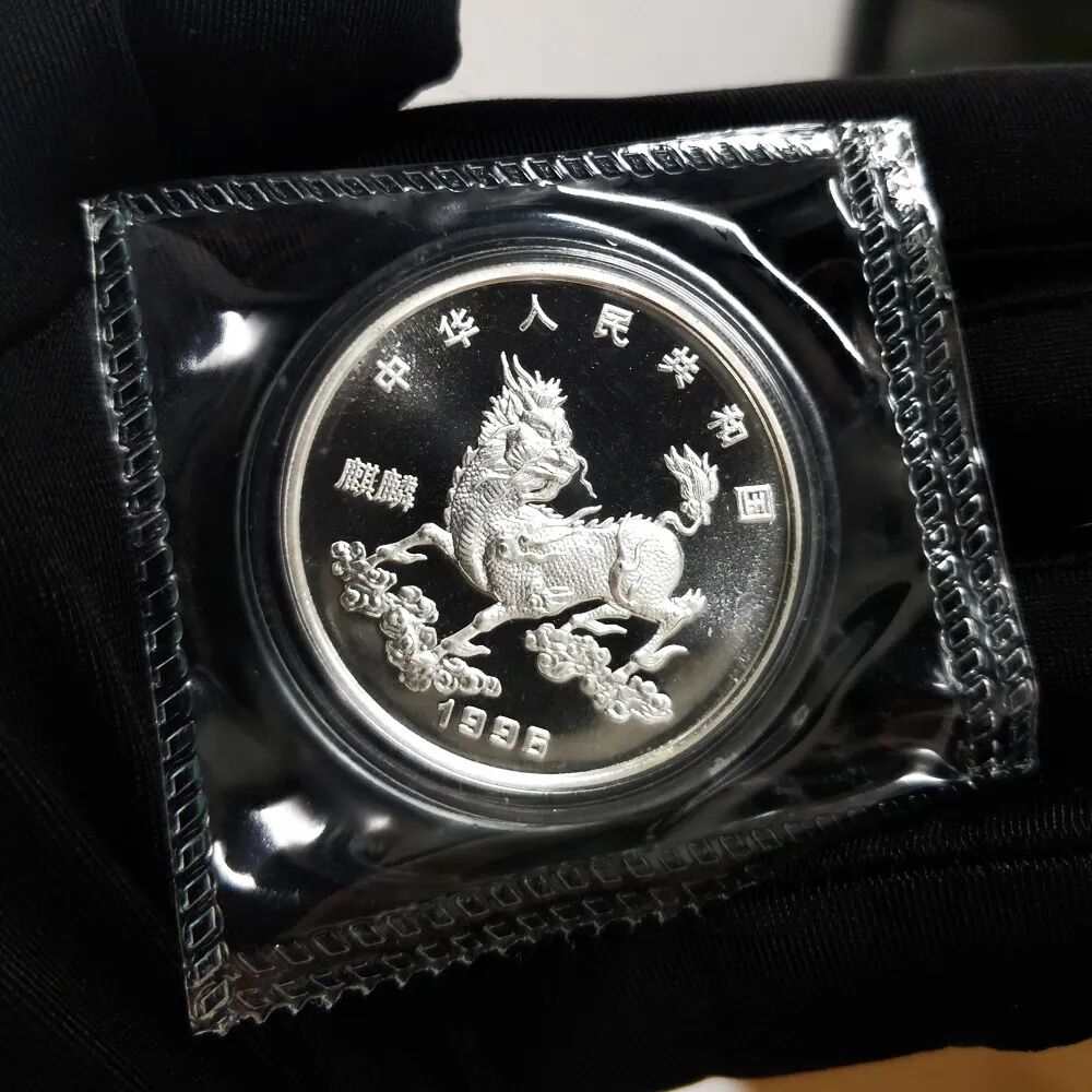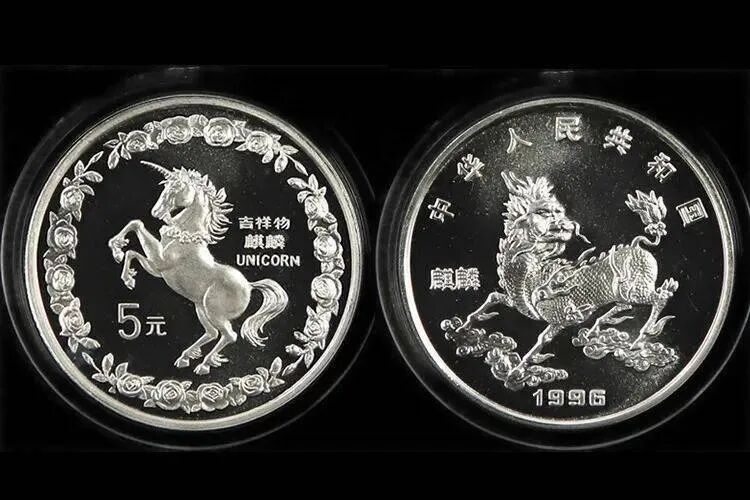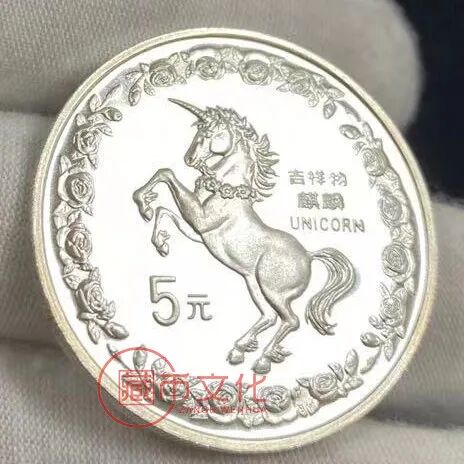 麒麟不仅在中国广为人知,在西方文化中也有相对应的神兽——独角兽,是东西方神话的有趣交融点。麒麟系列纪念币的发行计划早在1992年提出,直至1994年才正式发行。两种吉祥物出现在同一枚币的身上,是中西文化交融的一种表现形式,在今天来说,已经很少能见到这种中西文化交融的纪念币了,所以这枚麒麟币更显弥足珍贵。