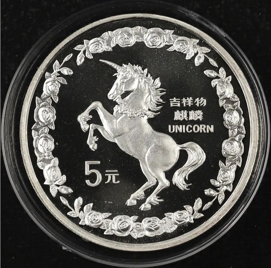 麒麟是中国古代神兽,性情温和,主太平、长寿,民间还有"麒麟送子"的说法。古人认为,麒麟出没处,必有祥瑞。在中国传统文化中,人们认为麒麟是一种“仁兽”,它是祥瑞的象征,代表仁爱、和平与高贵。欧美传说中的独角兽是一匹周身雪白的优美的小马,它灵活敏捷,经常自由地徜徉在山间野外,它们是幸运的使者,哪里有独角兽的身影,哪里就是好运的开端。这样一枚代表了吉祥、家庭和睦、祝福儿女的币,送老婆孩子,送朋友领导都合适。