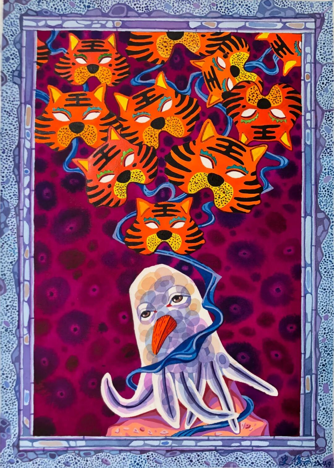 史俊文 《看我No.2》 纸本水彩 55×55cm 2021年