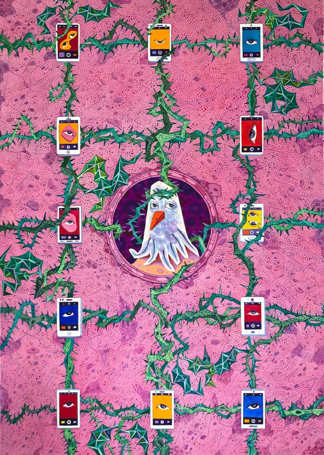 青年艺术家史俊文致答谢词时说,“此次展览展出了40余幅疫情期间创作的绘画作品,涵盖多个系列,从最早的《隐秘生长》系列到现在的《秘境》《玫瑰之夜》系列。”他表示,《隐秘生长》系列更多从自身出发,对过往经历的思考与总结,《玫瑰之夜》系列则是关注社会问题作出的敏锐反应,并在视觉语言上寻找自我表达的方式。![]()