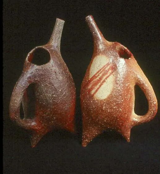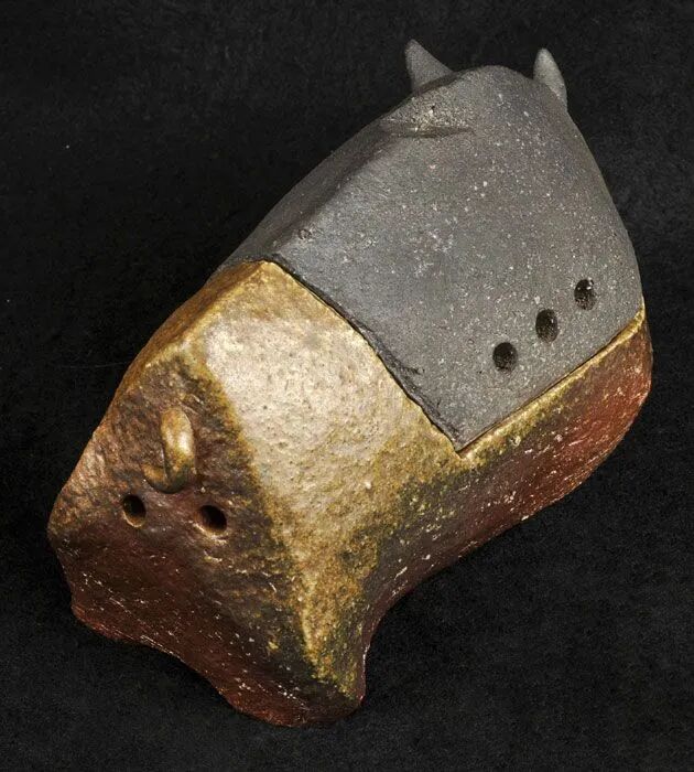 Wakimoto作品中相当骄傲和引人注目的三条腿的浇注容器,这些原型可以追溯到中国的新石器时代和大汶口文化。突出的腹部和指向天空的喙,看起来就像参与某种仪式的企鹅。