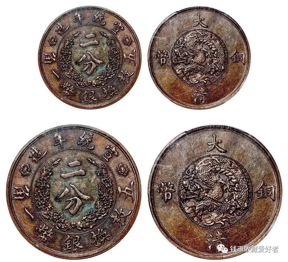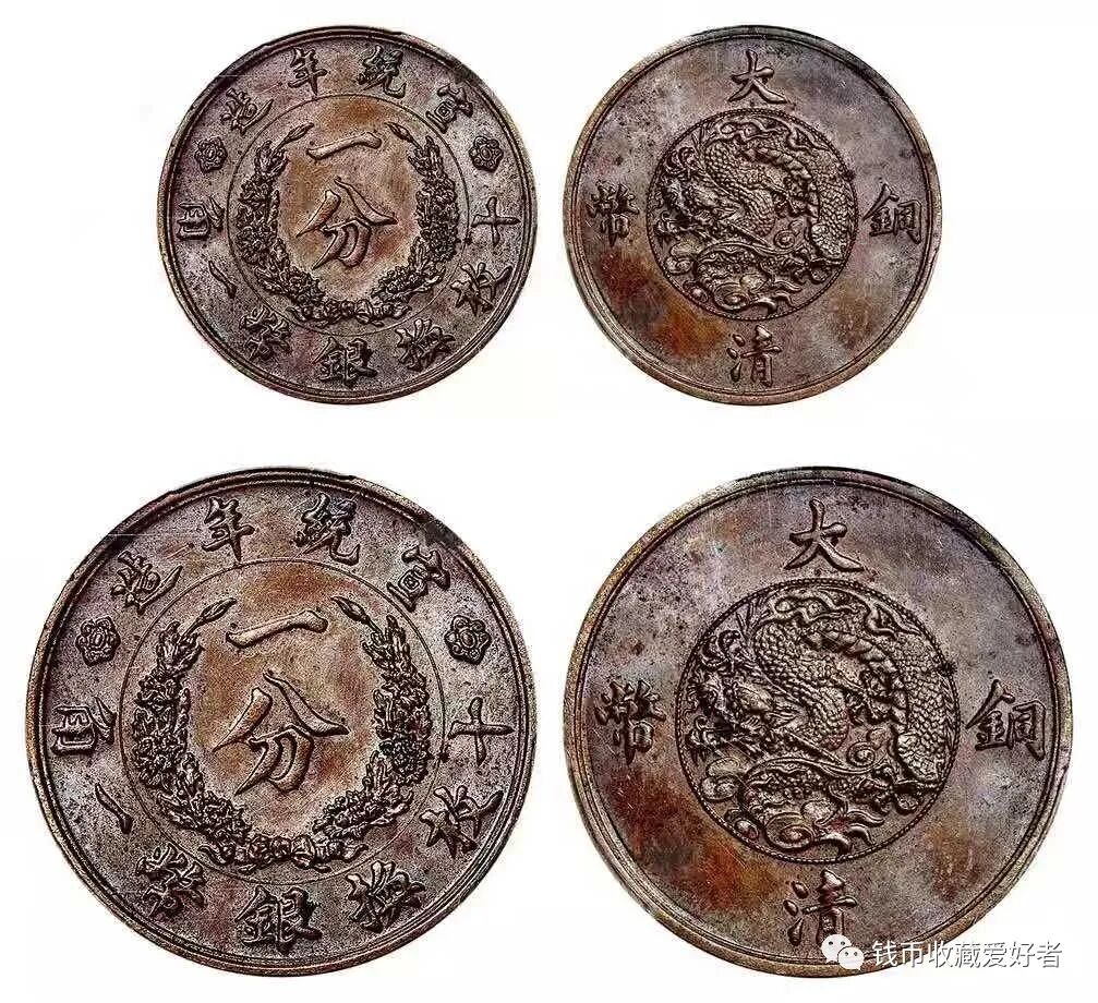 宣统三年,天津度支部造币总厂开铸二分、一分、五厘、一厘的新式铜币,与此同时还铸有计值文字,其铸成后适逢辛亥革命,清王朝灭亡,所以均未发行。