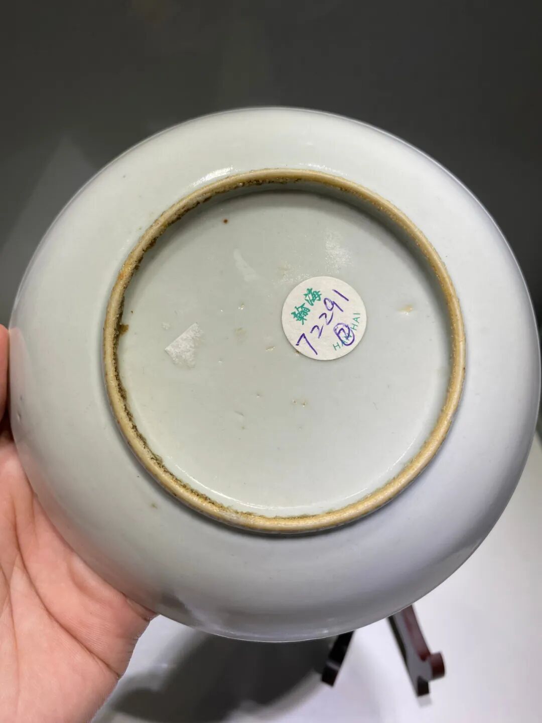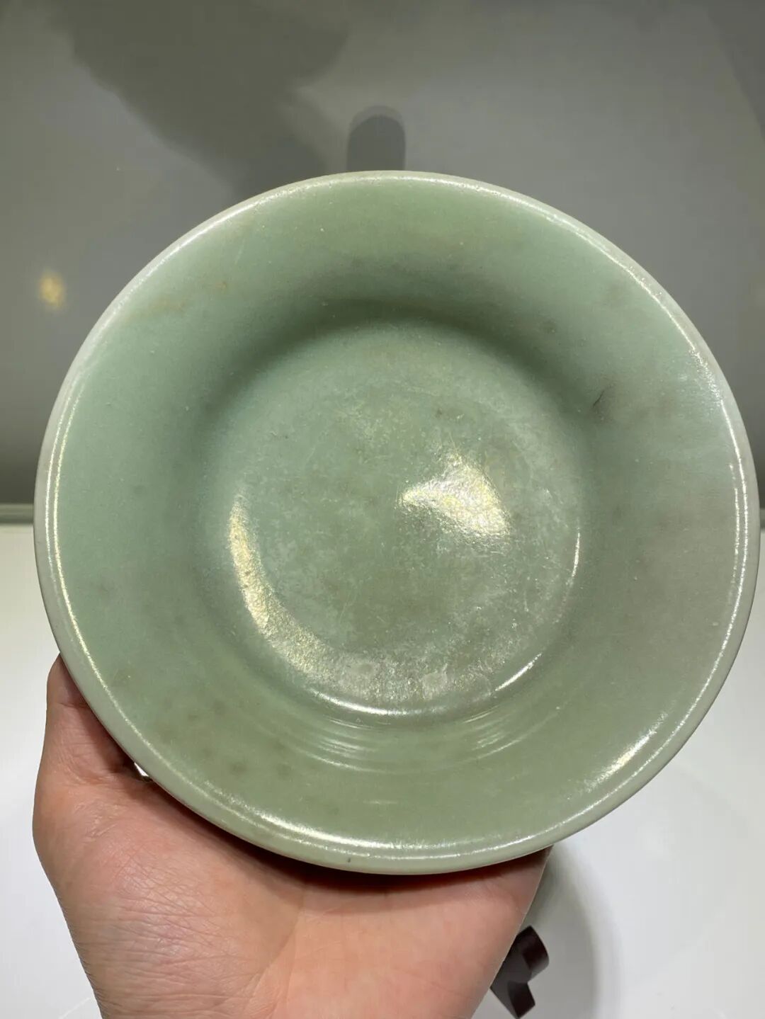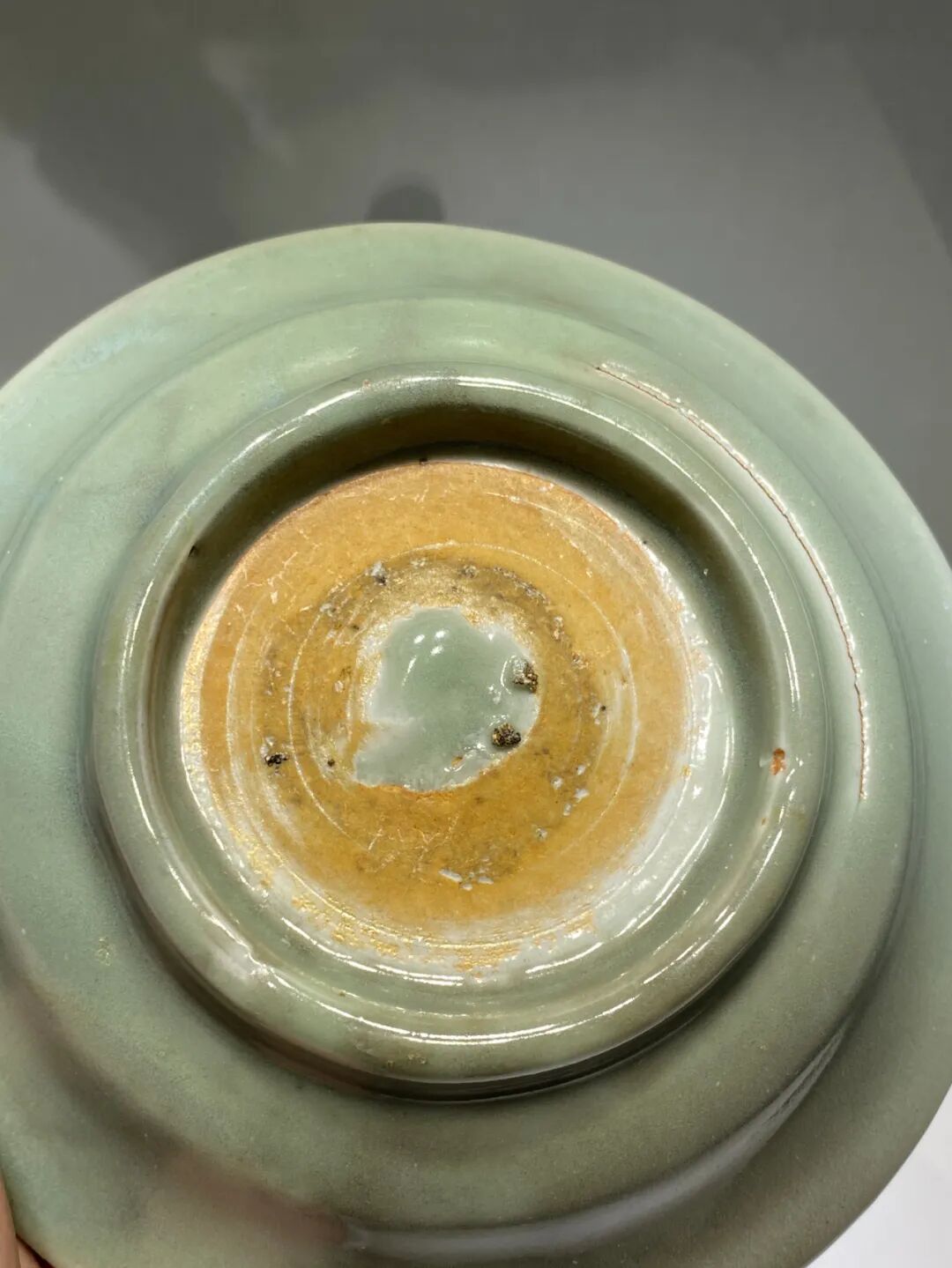 直径15.2cm 高3.8cm 底部有窑裂,釉面有些窑灰,还有一处缩釉,其余没毛病