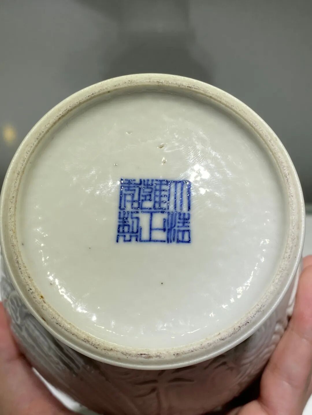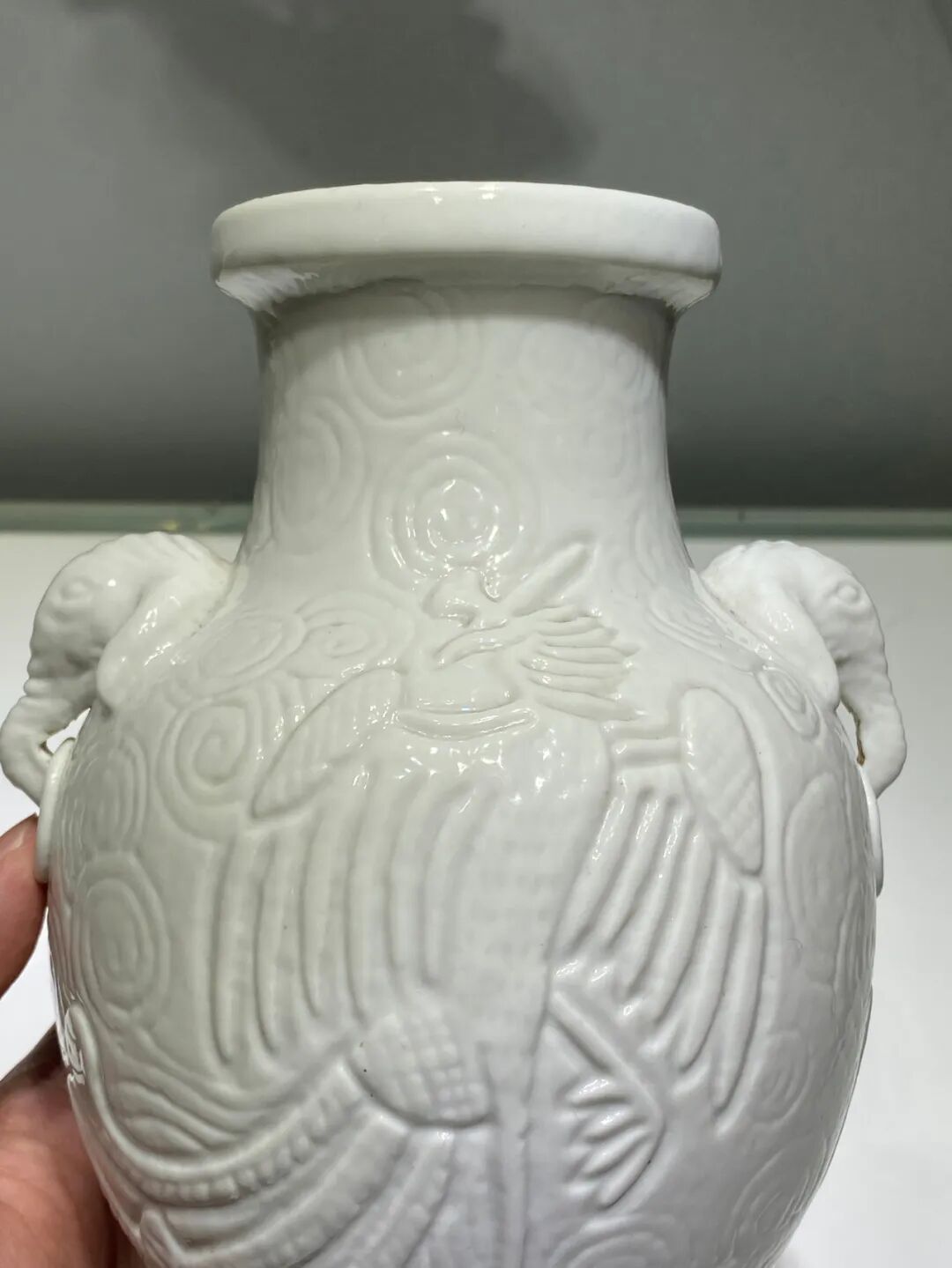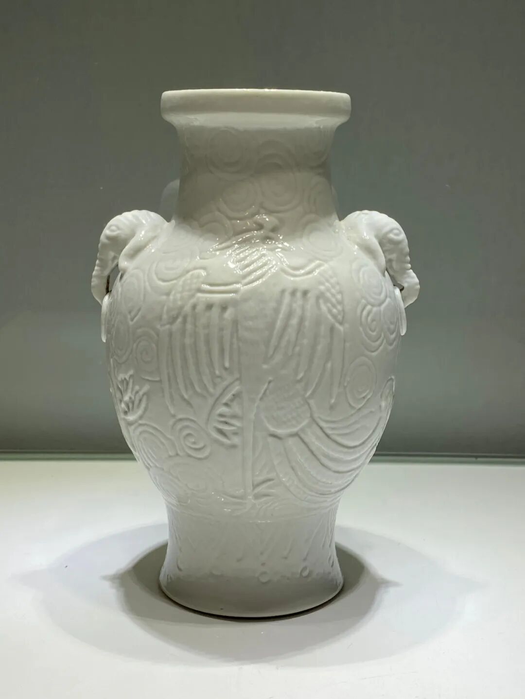 简介:全器通施仿定白釉,釉质凝润,色泽纯净,光洁清丽。近足处模印变形蕉叶纹,瓶身模印凤凰纹,纹饰清晰,工艺细腻,素雅大方,清幽简洁,韵味十足,底款“大清雍正年制”,字体规整,整器制作规范,集古朴与精雅于一体,彰显出清代制瓷技艺之精湛!