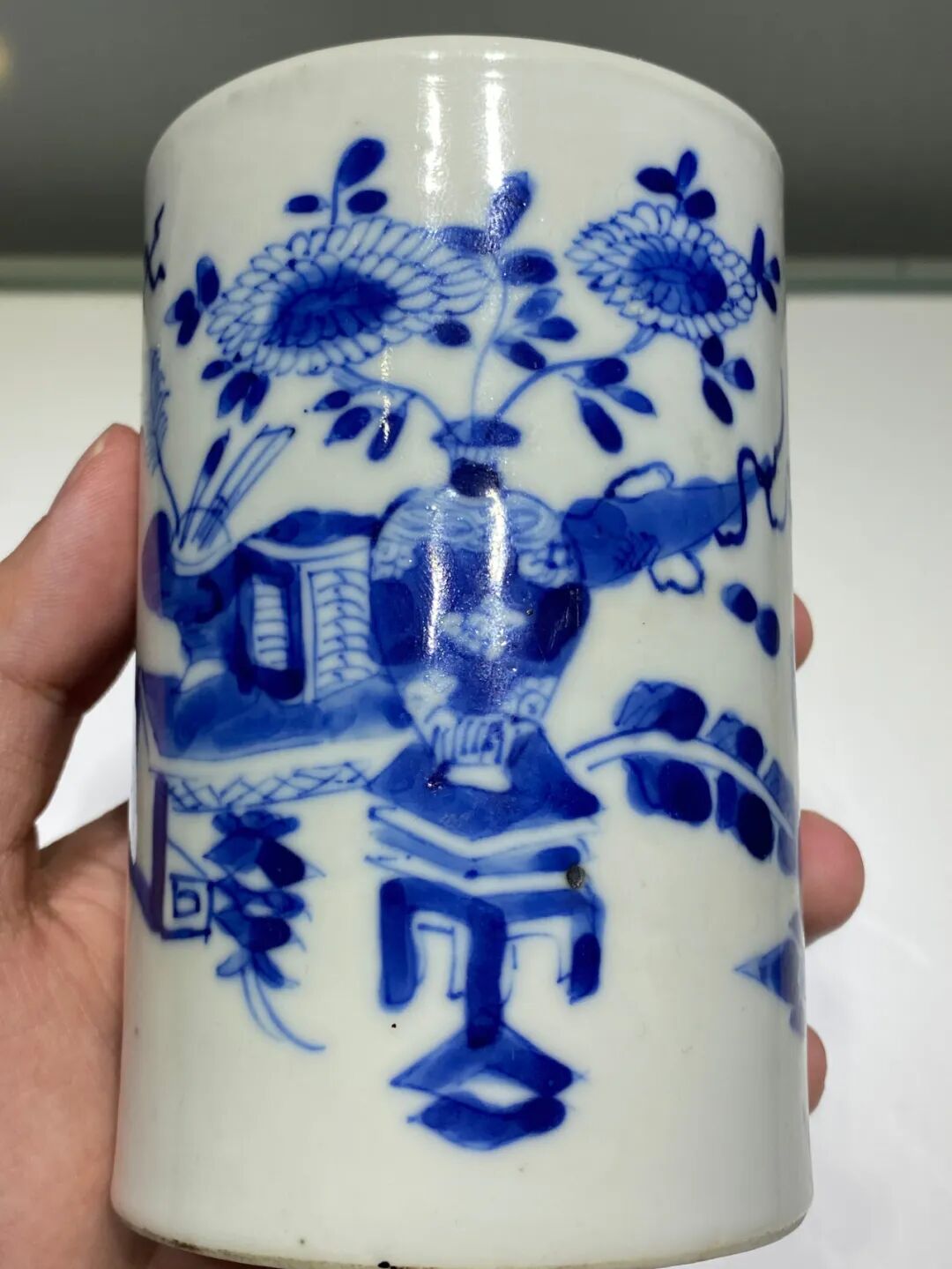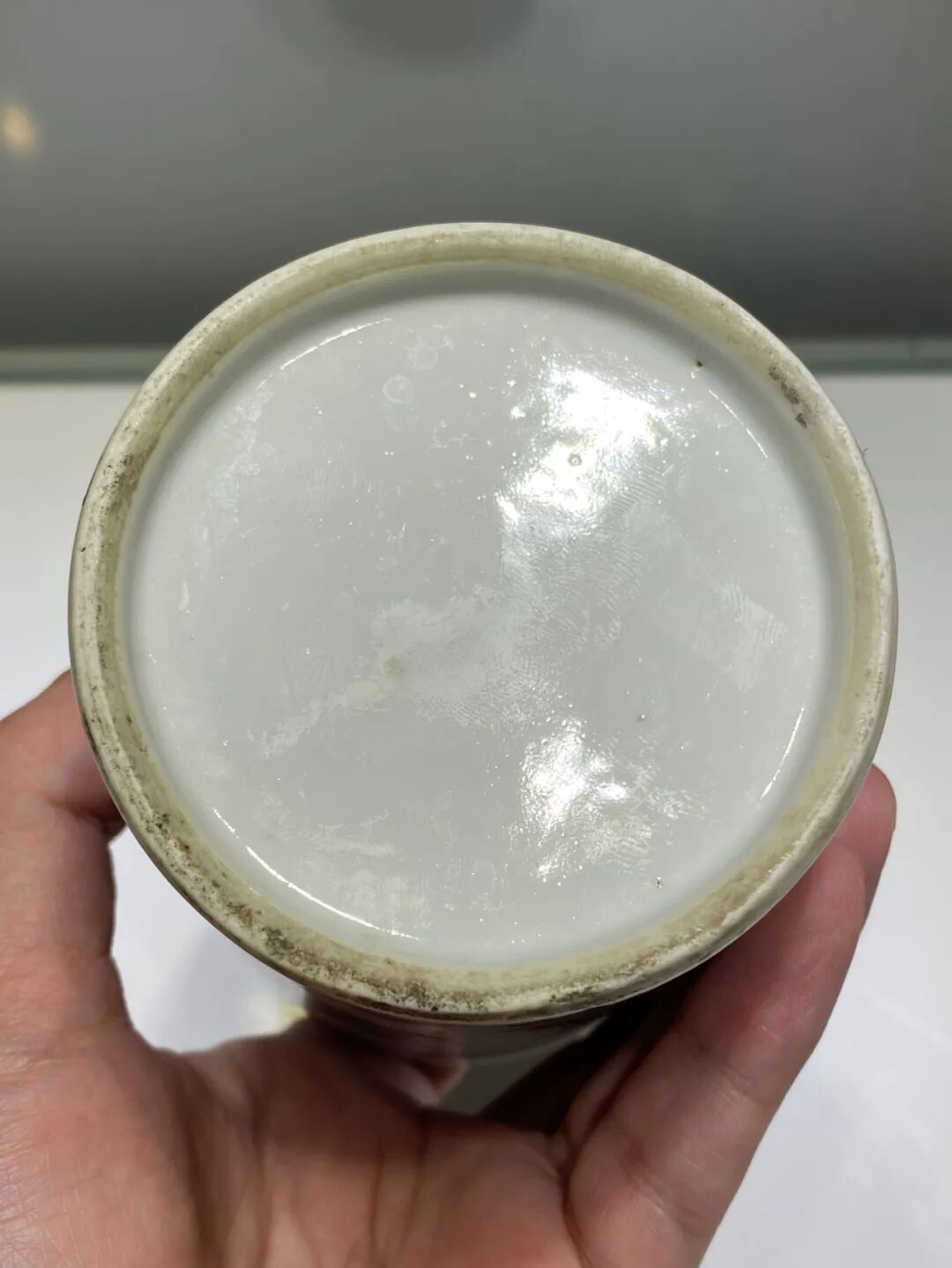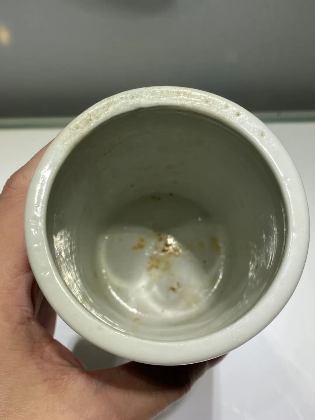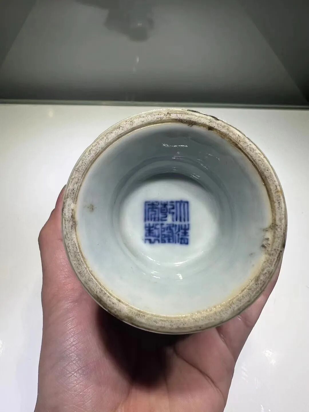 高11.4cm 口径7.5cm 品相有一处冲修,内有鸡爪不透,余没毛病。