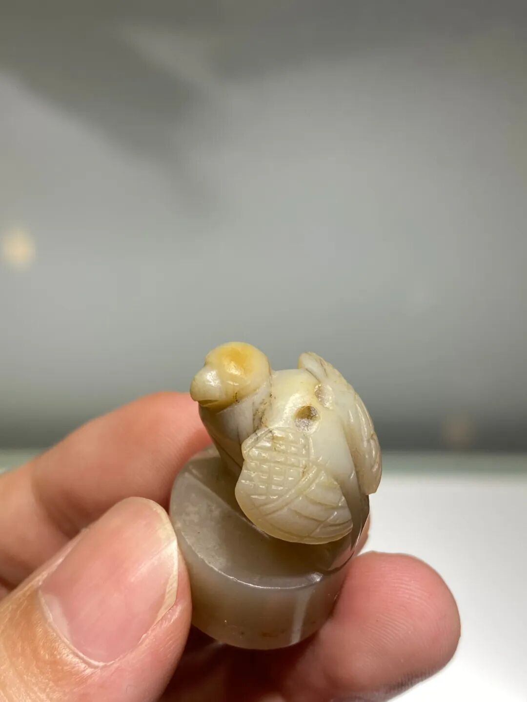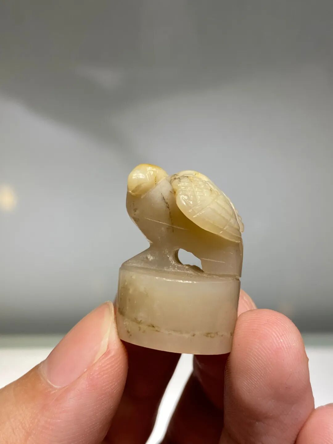 拍品第十二件清代 白玉鹰钮印章 高3.6cm 直径2.3cm 重24.4g
