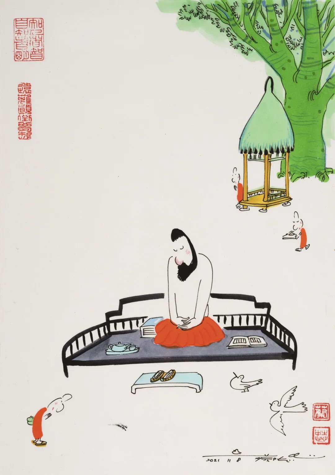 “蔡志忠绘画作品专场”下含精彩作品36幅,内容涵盖菩萨、罗汉、老子、庄子、孙子等题材。以漫画的形式,深入浅出地为中国优秀传统经典做适切的诠释。透过漫画理解古代经典,解读深厚的中华文化和智慧。