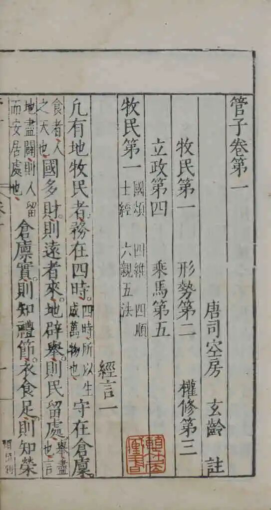 此书旧题管仲所著,乃齐国稷下学者的著作总集,包含道法、兵、纵横、儒、阴阳、农诸家之言。后有唐代尹知章等注、明代刘绩补注。有宋代杨忱刻本、宋张嵲校正本等。