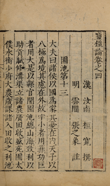 桓宽,字次公,汝南(今属河南)人。博学,治《公羊春秋》。桓宽据汉昭帝始 元六年(前81)御史大夫桑弘羊与贤良文学之士辩论盐铁政策的会议记录,推衍双方议论,增广条目,著成是篇。