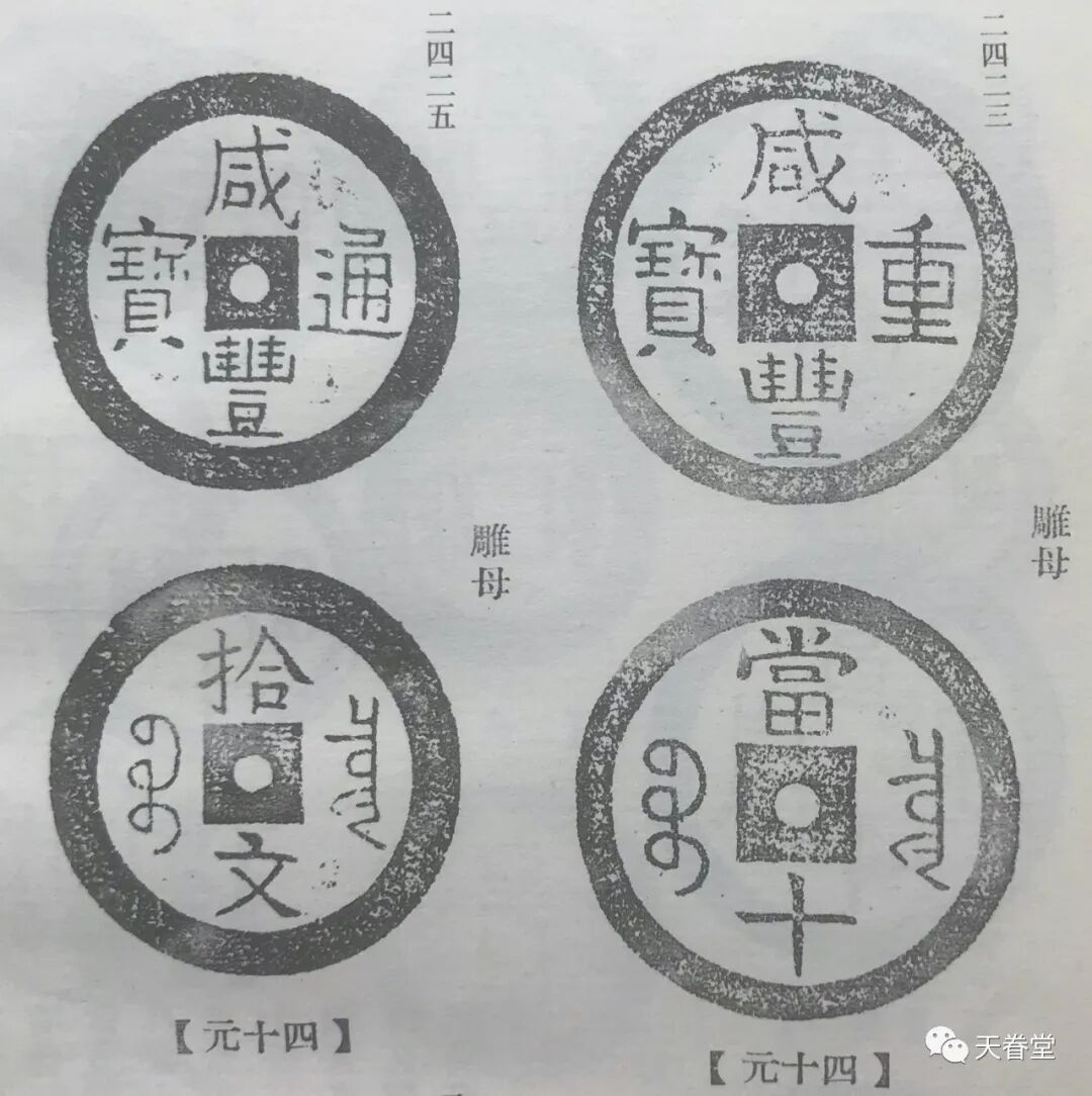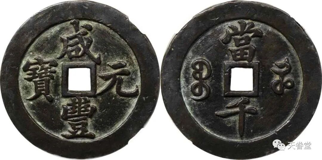 许多咸丰名誉品超越民国大名誉品。徐天启通宝折三篆书,元末起义军徐寿辉,于元至正十八年改元天启,并铸天启通宝,其中折三天启通宝篆书是泉界名品,试铸性质,目前仅见数品,古泉五十名珍之一(旧排名)。咸丰元宝宝河当千宽缘样钱,在民国时期的名气不大,只能算是名誉品,根本无法与五十名珍里面的任何一品比美,现在已经可以超越大多数民国时期公认的名誉品古钱。
