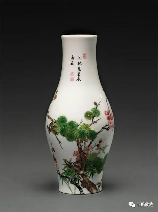 有一则历史记载描述了皇帝亲自参与珐琅彩制作的过程。雍正十年八月十四日,雍正下达谕旨对珐琅彩图案烧制发表了自己的命令:“此瓶釉水比先虽好,其瓶淡红地深红花,淡绿地深绿花,太碎太小不好看,嗣后不必烧造此样。或锦地或大些树叶花样,用心烧造,钦此。”