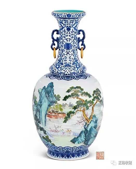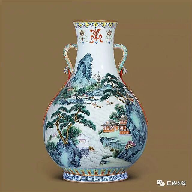 史上最贵之第九名 清乾隆 御制洋彩江山万代如意耳琵琶尊 估价:咨 询 价 成交价:RMB 94,75,000 北京保利2018秋季拍卖会 成交日期:2018-12-08 尺寸:高37cm