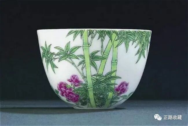 清雍正 珐琅彩月季绿竹诗意小杯 私人收藏