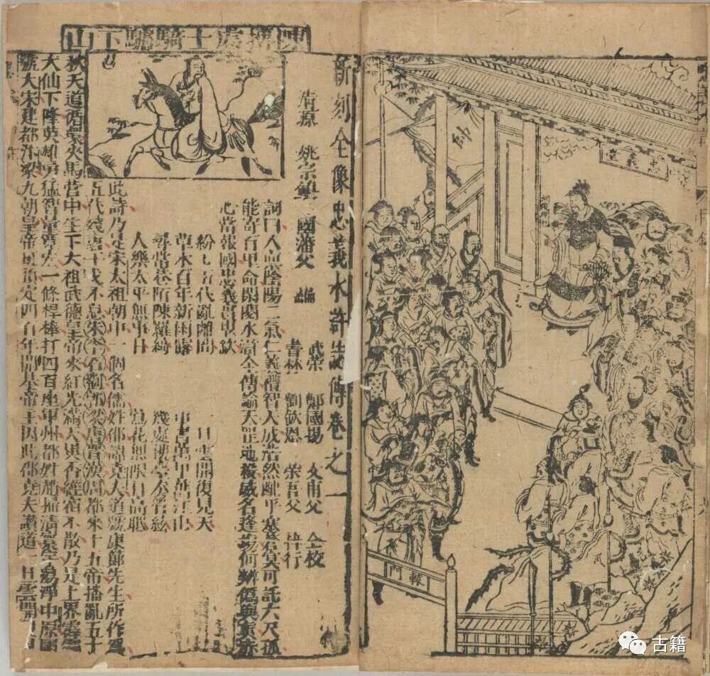 余象斗在市场营销领域的杰作还不止于此。比如他对图书插图十分重视,每本书做得好似连环画,上面是图,下面是字。虽然余家的刻工比起苏杭一代的雕工水平差得远,但架不住图多,图多就易读,读者就愿意买。在书的细节上,余象斗也下了大工夫,他印的书,多冠以“新镌”、“新刻”、“新锲”、“新刊”、“新锓”,他往旧书掺杂私货,就可以当成新书来卖了。余象斗出过《新刊京本校正演义全像三国志传评林》, 往里面多加了花关索的一段故事。水浒传也难逃他的毒手,被出了一版《新刊京本全像插增田虎王庆忠义水浒全传》,看名字就知道他干了些什么。书名后缀还往往以“批评”、“评林”结尾。这是因为余象斗首创了弹幕体,对一些旧书夹以注释批评,读者边读边看他在书旁发的议论,等于是买了一条导演评论音轨。这样一来,既可以借名著的东风,再赚读者一笔,又不会被说是旧书新印,里面有原创的内容,更刺激读者去买。