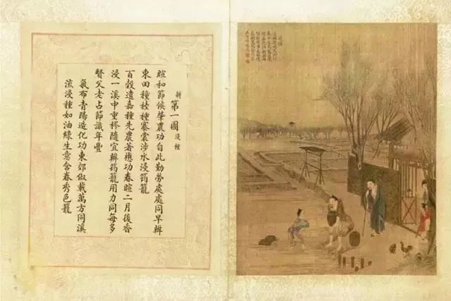 清乾隆年间,乾隆皇帝不仅命人绘制《耕织图》,并且将《耕织图》中的美景用实际山水复原出来,把关系到国计民生的衣食之本,用艺术与现实相结合的手法镶嵌在清漪园绚丽的湖光山色之中。