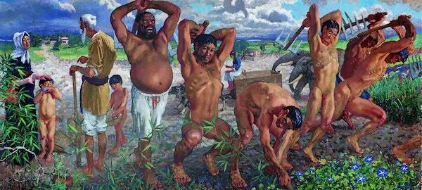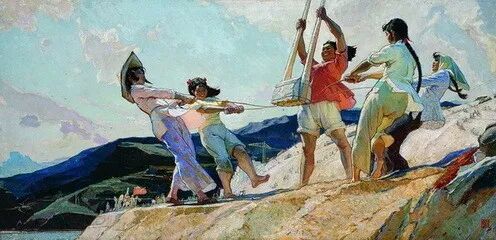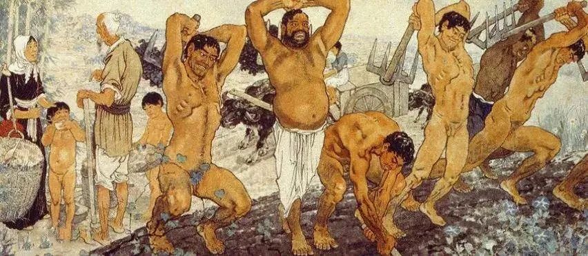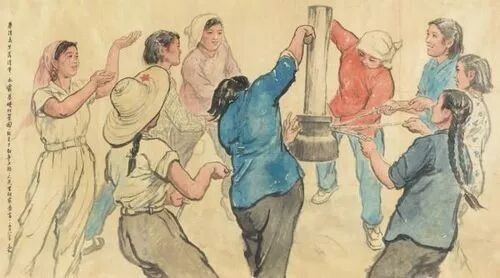 蒋兆和《九兰打夯》(国画)