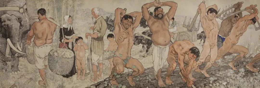 徐悲鸿《九州无事乐耕耘》纸本设色 横幅 150×250cm 1951年