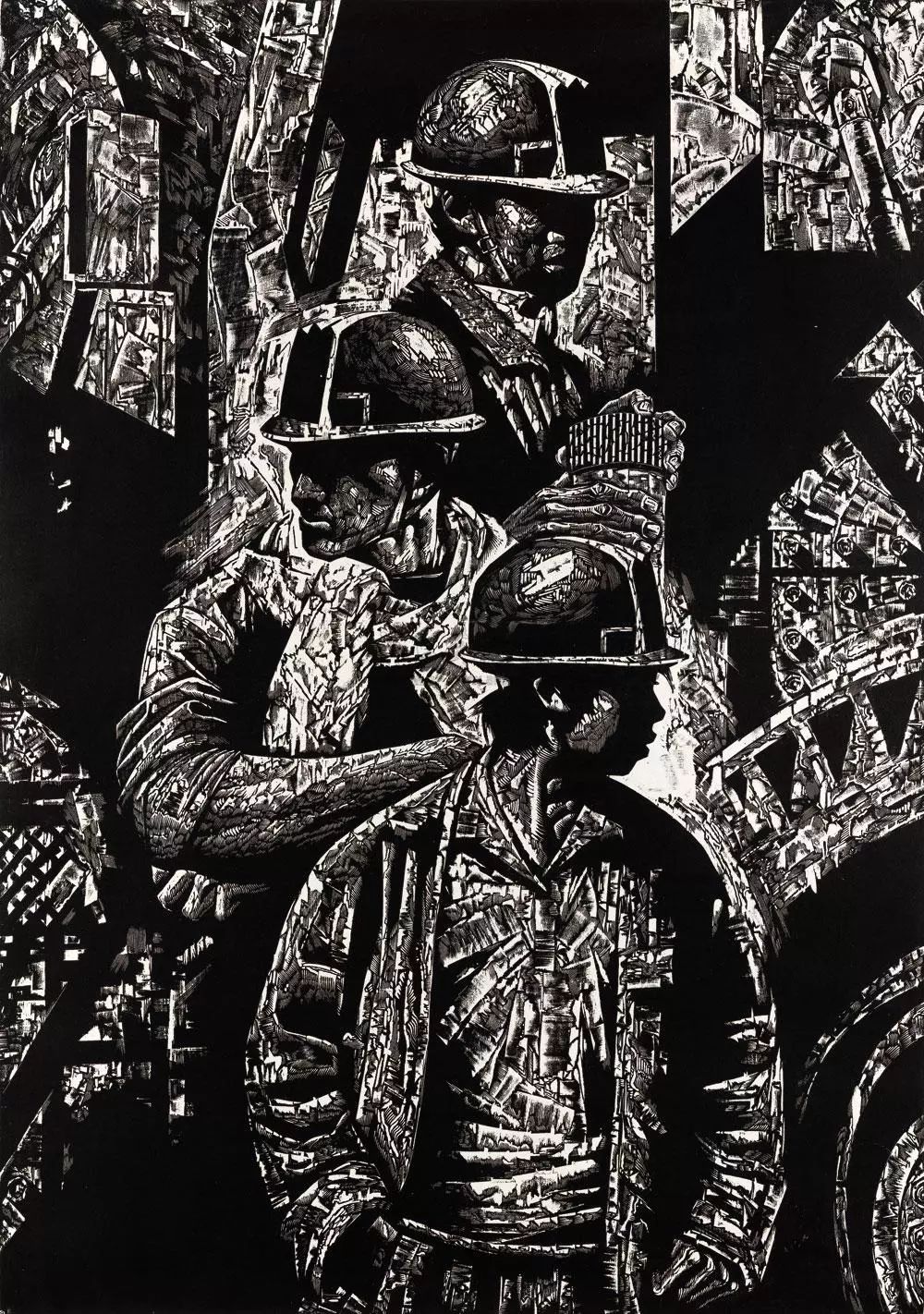 代大权《挖掘机组》(版画)