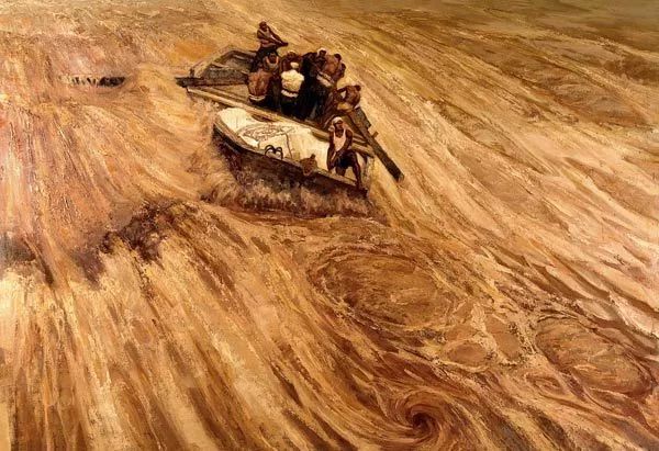 杜键《在激流中前进》(油画)