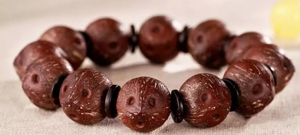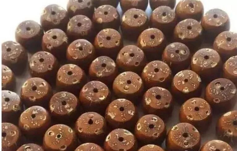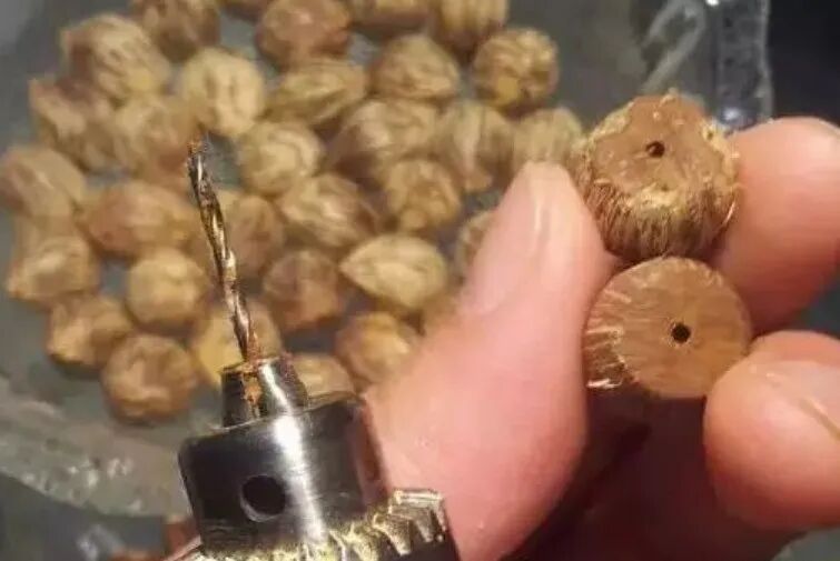 对于其他的木质手串制作,打孔可能是非常简单容易操作的,但是对于紫金鼠菩提来说有一定的难度。因为紫金鼠菩提内部的结构与椰子有一定的相似,是带有白肉的,三孔中有一个是与内部的白肉连接的,两头磨平之后,所剩的厚度已经不是太多,很容易出现打孔歪了的情况。玩友们需要慢点操作,慢工出细活。