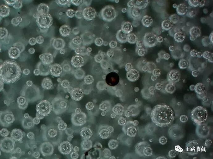 气泡就是在显微镜下观察瓷器胎外釉下,以及釉内蕴藏的气泡。
